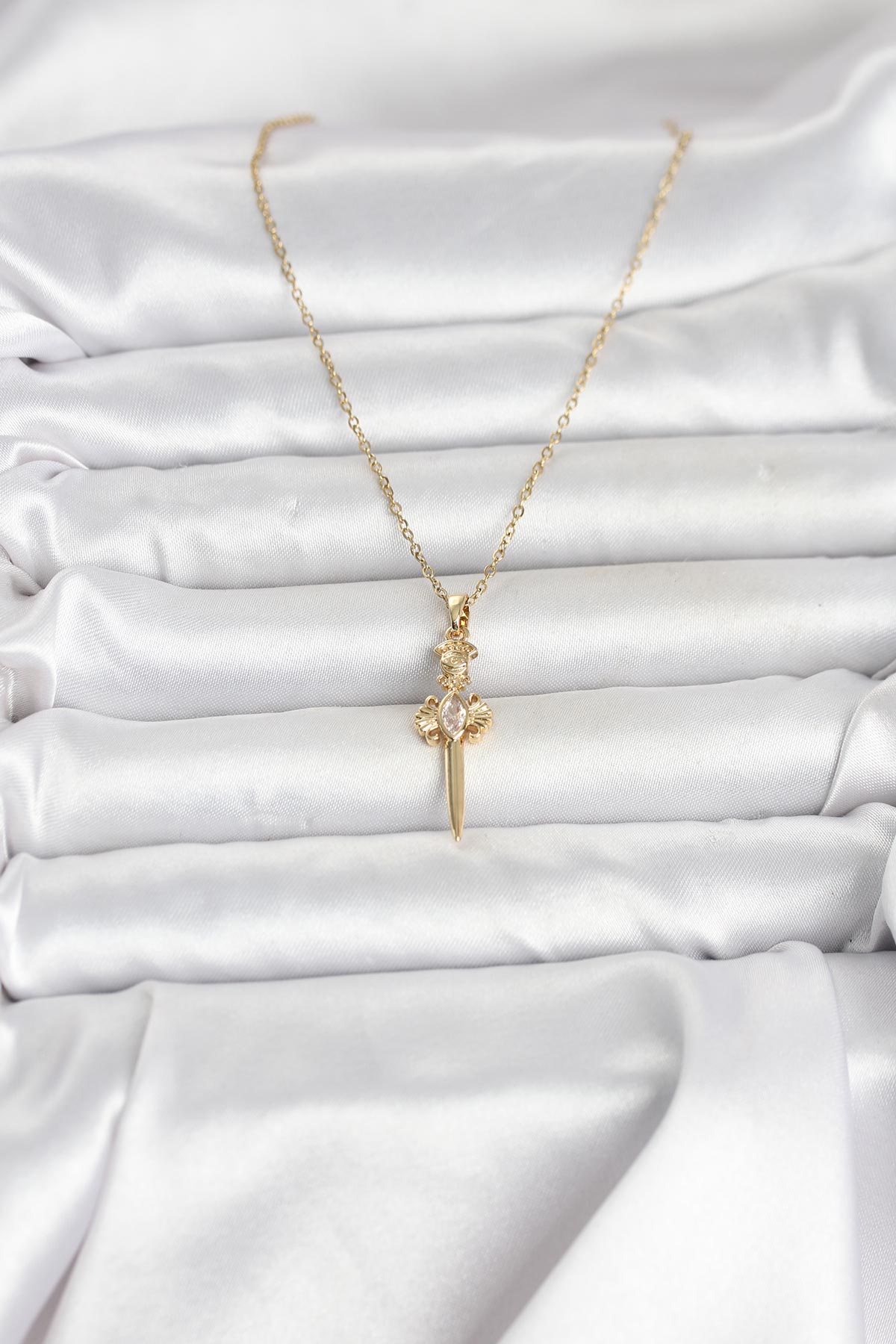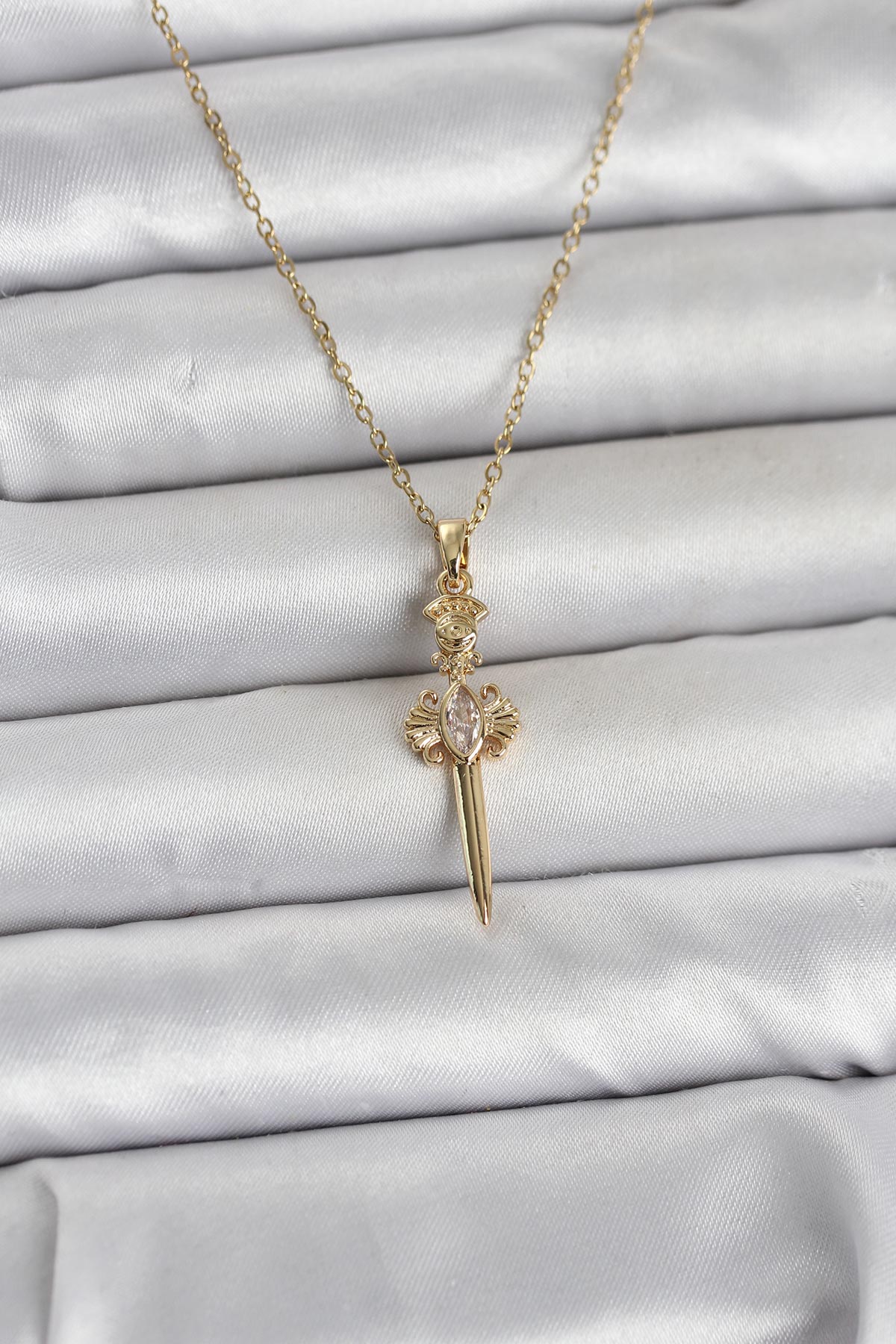316L Çelik Zincir Gold Renk Kılıç Model Kadın Kolye