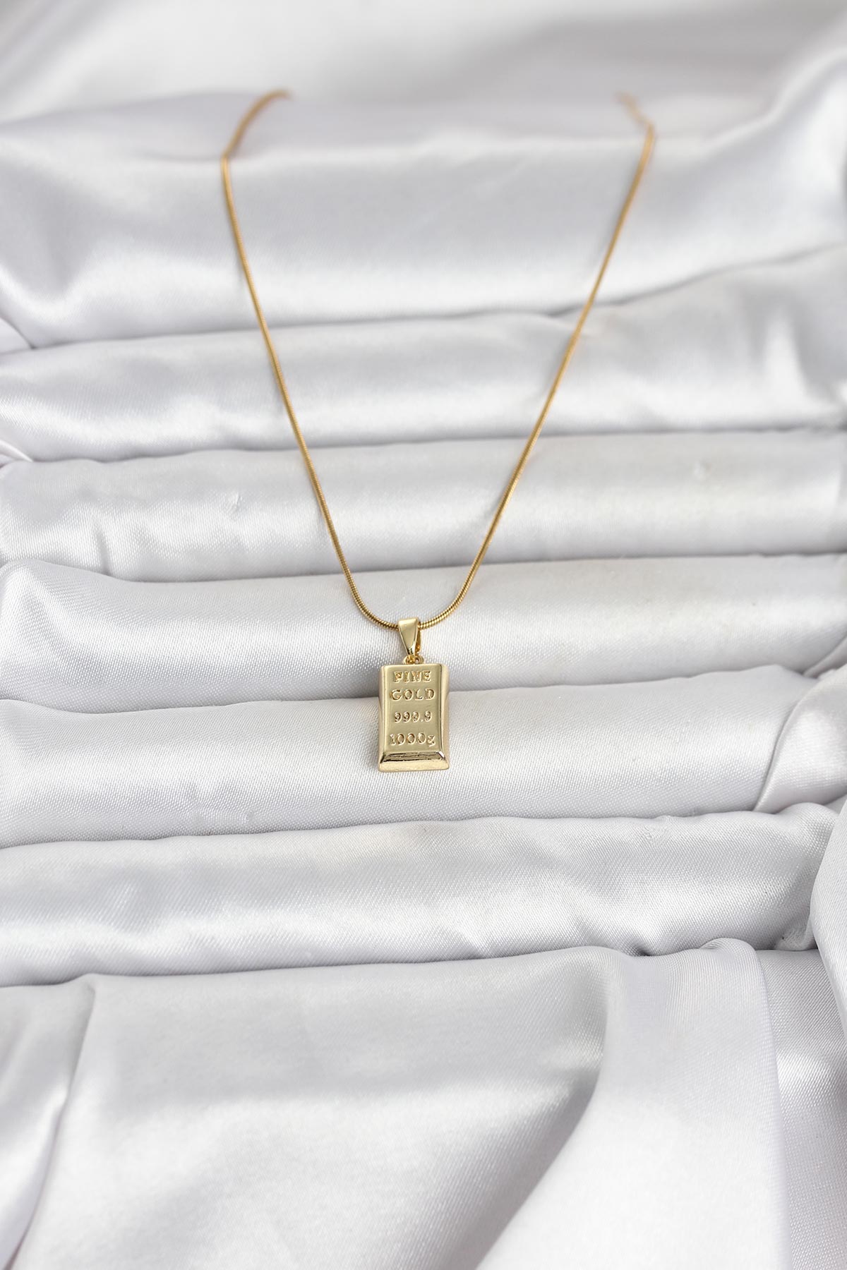 316L Çelik Zincir Gold Renk Külçe Altın Model Kadın Kolye