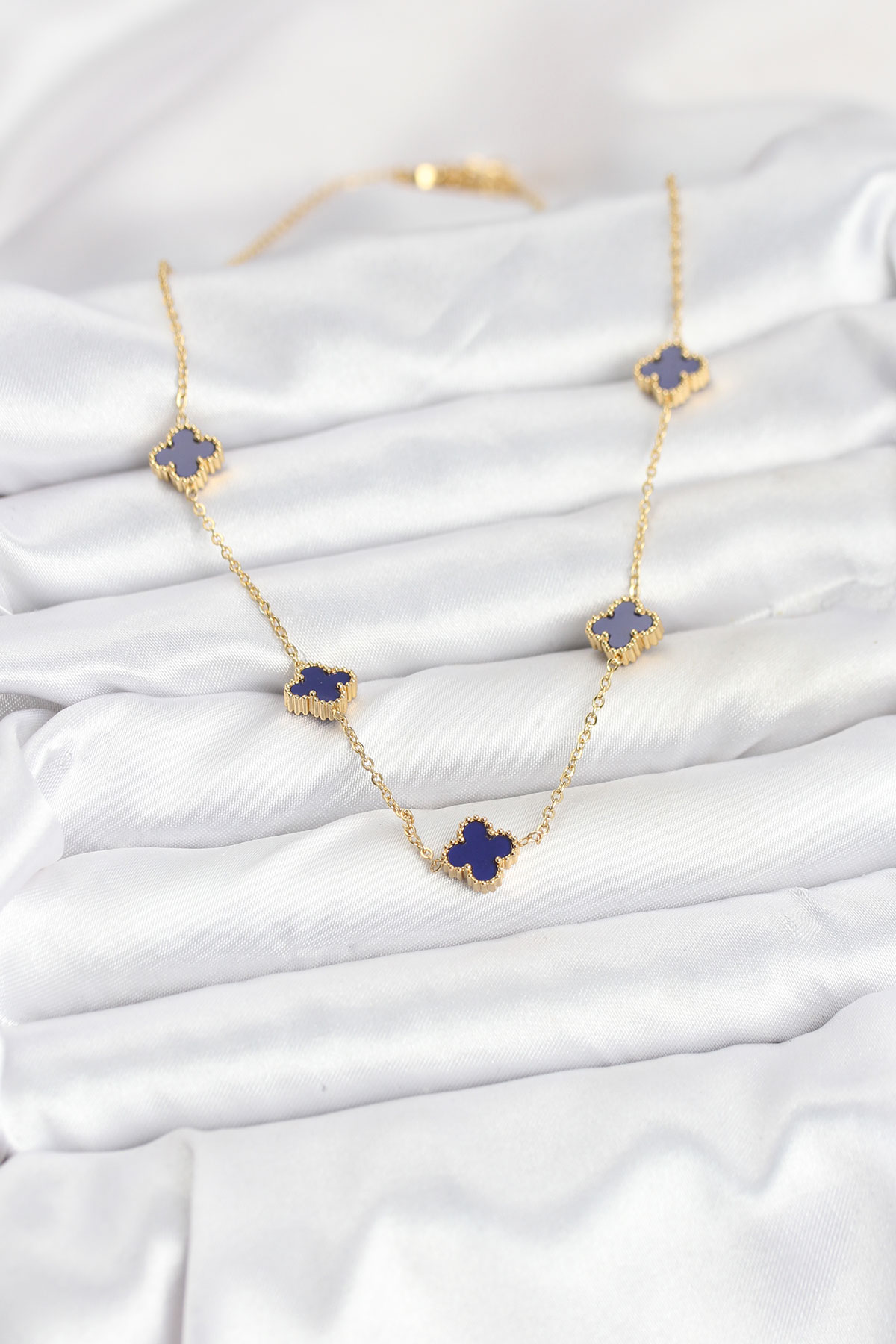 316L Çelik Zincir Gold Renk Lacivert Baby Boy Yonca Kadın Kolye