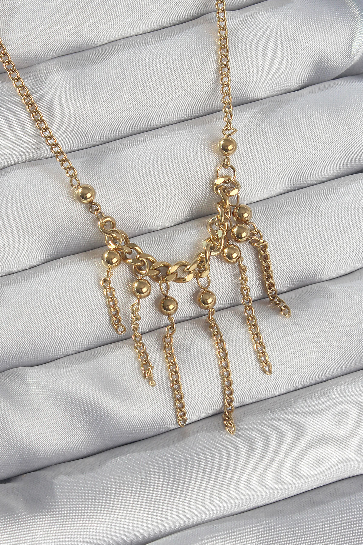 316L Çelik Zincir Gold Renk Topçuk Detay Sallantılı Zincir Kolye