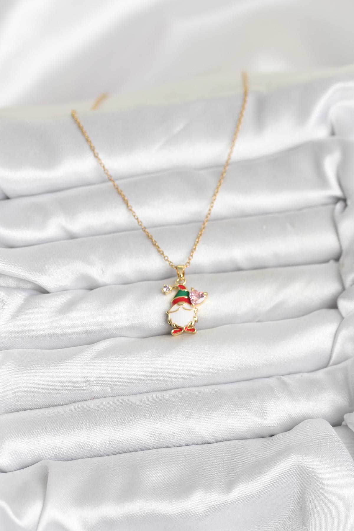 316L Çelik Zincir Gold Renk Yılbaşı Teması Kadın Kolye