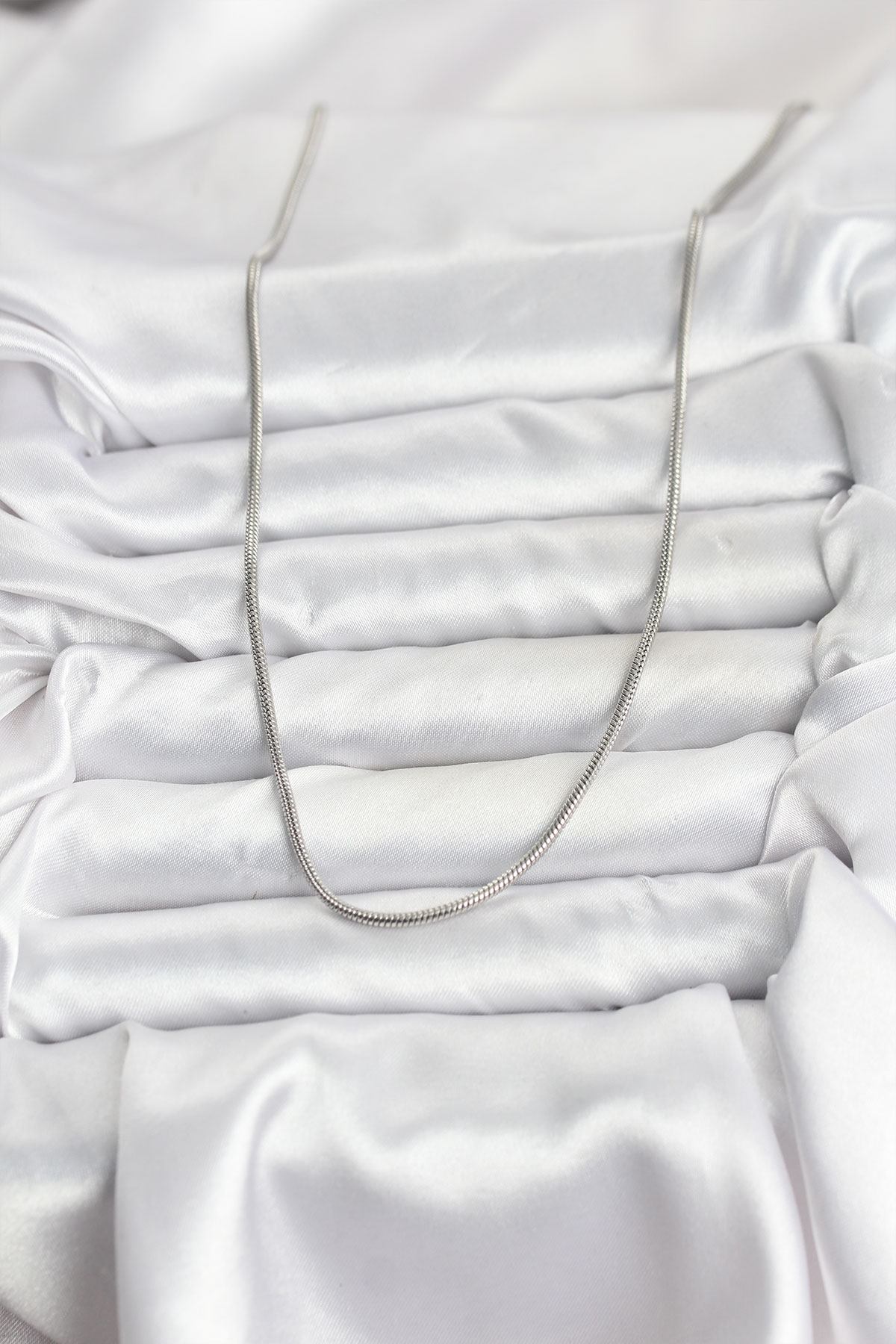 316L Çelik Zincir Gümüş Renk 60 cm Yılan Zincir Kadın Kolye