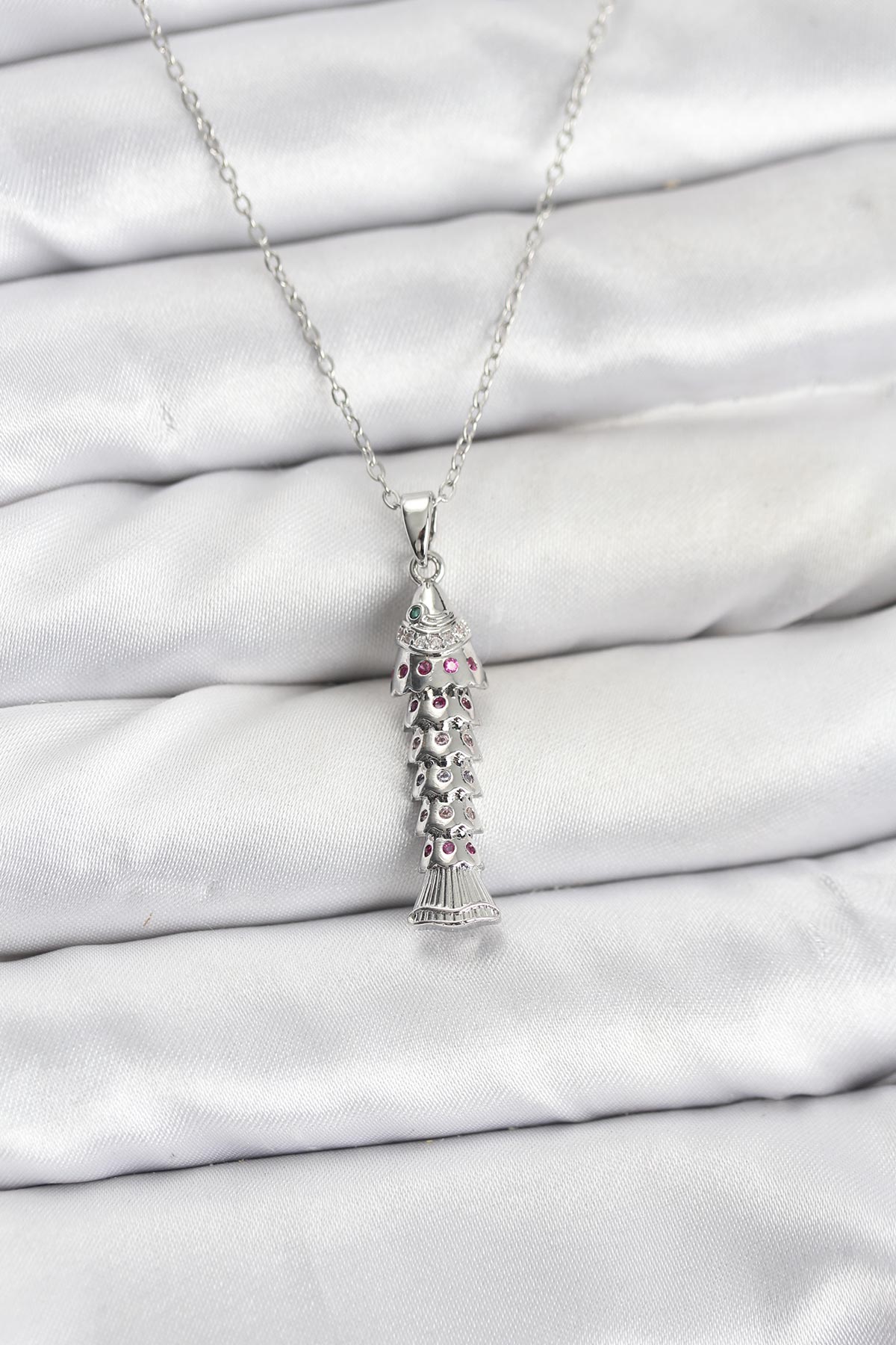 316L Çelik Zincir Gümüş Renk Balık Model Zirkon Taşlı Kadın Kolye