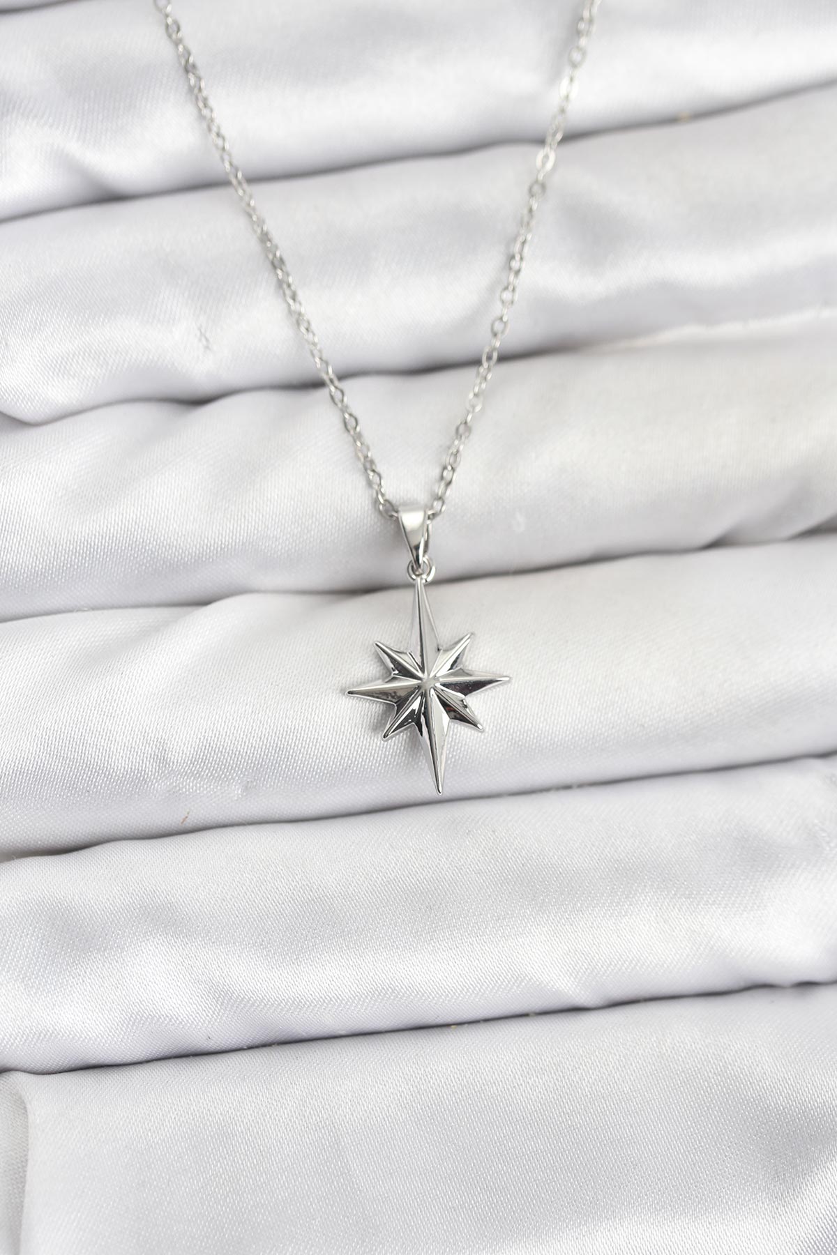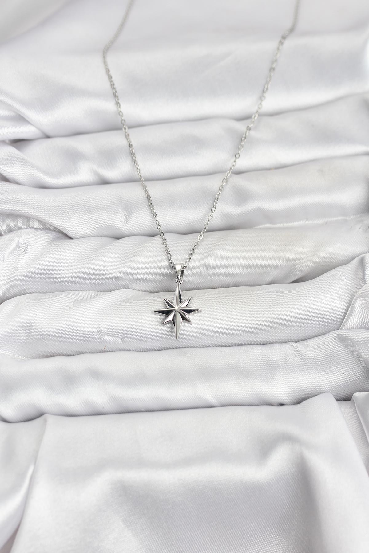 316L Çelik Zincir Gümüş Renk Kutup Yıldızı Model Kadın Kolye