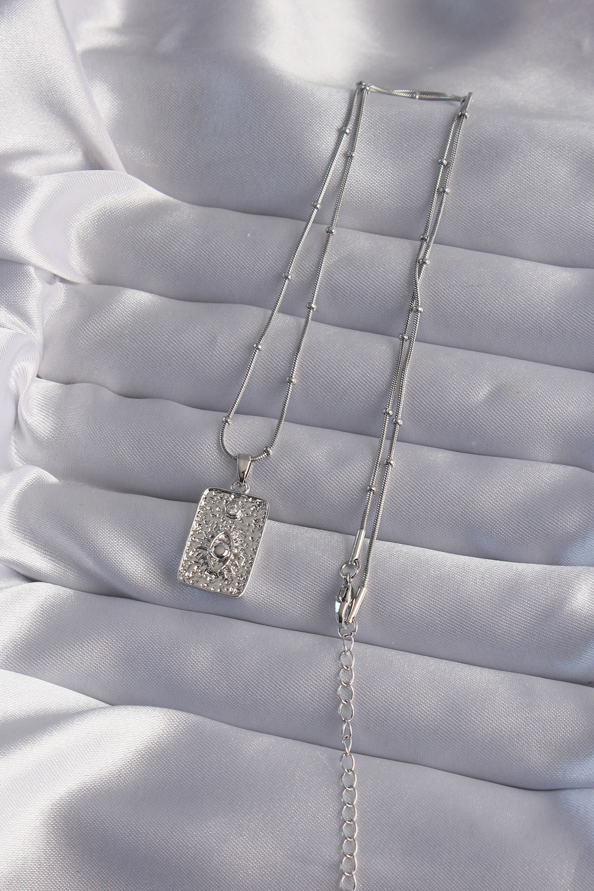 316L Çelik Zincir Gümüş Renk Lazer İşlemeli Göz Figür Tarot Kolye