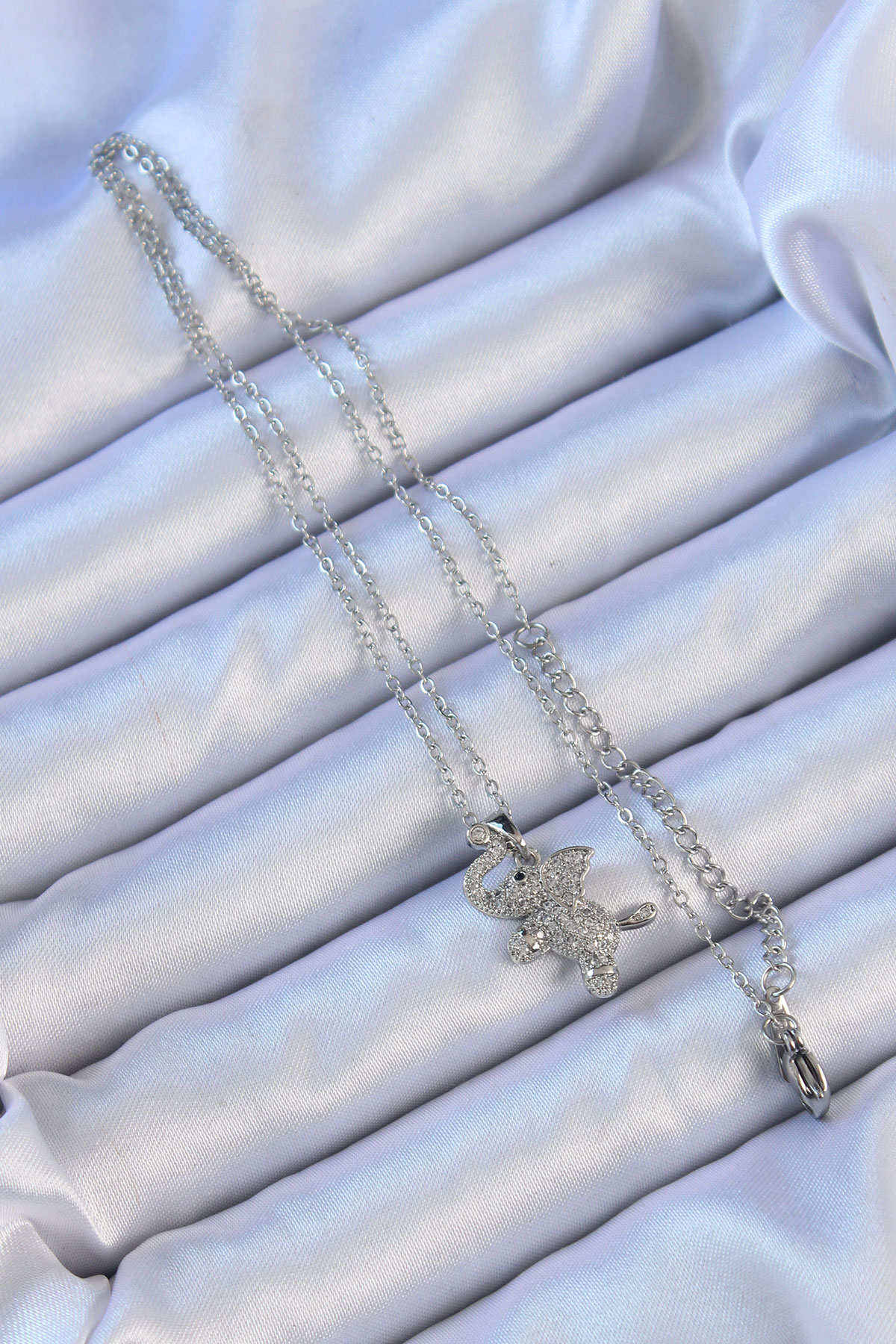 316L Çelik Zincir Gümüş Renk Zirkon Taşlı Fil Kolye