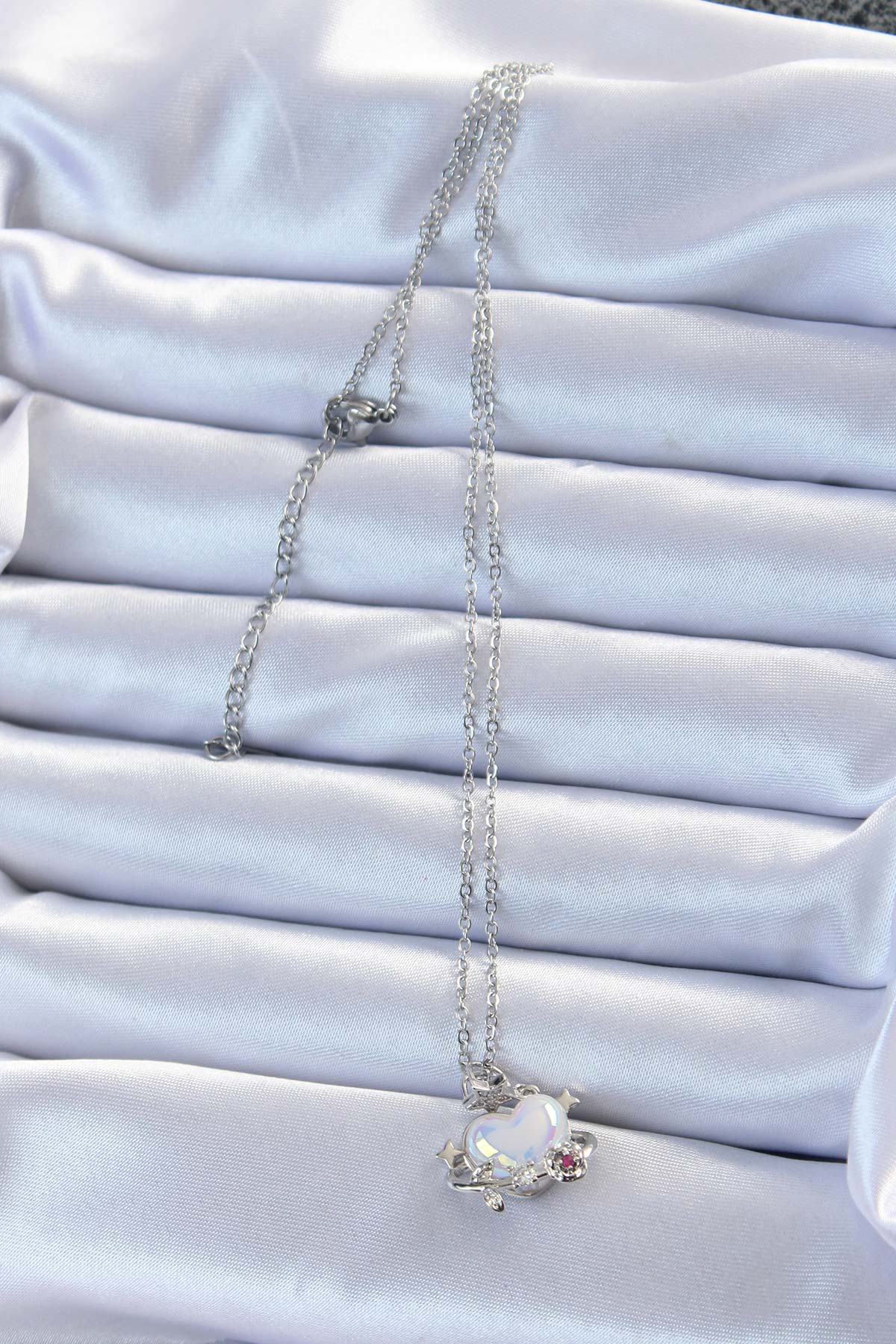316L Çelik Zincir Gümüş Renk Zirkon Taşlı Gezegen Görünümlü Kalp Kolye