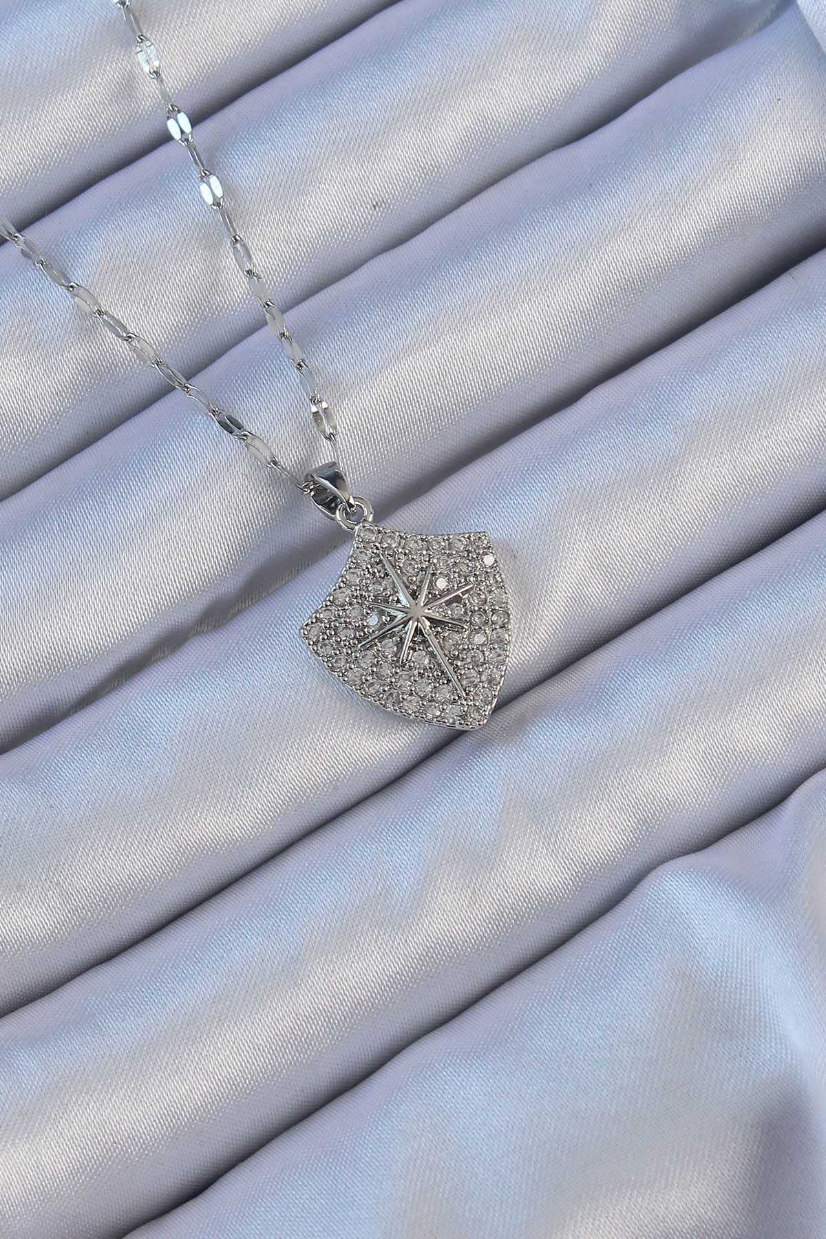 316L Çelik Zincir Gümüş Renk Zirkon Taşlı Kutup Yıldızı Kolye