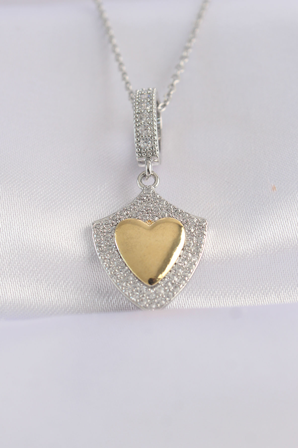 316L Çelik Zincir Gümüş Renk Zirkon Taşlı Tasarım Altın Renk Kalp Kolye