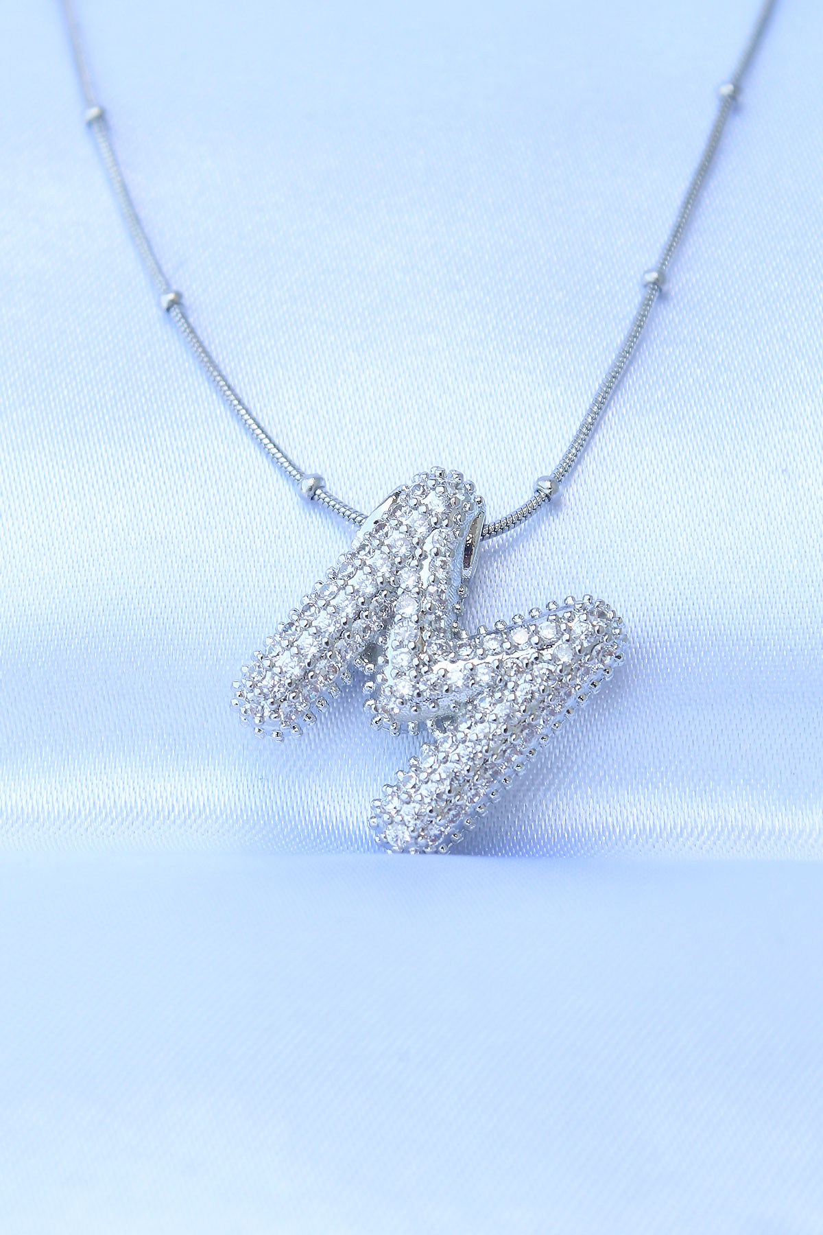 316L Çelik Zincirli Zirkon Taşlı M Harfli Gümüş Renk Bubble Kolye