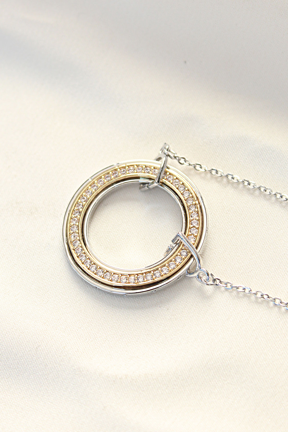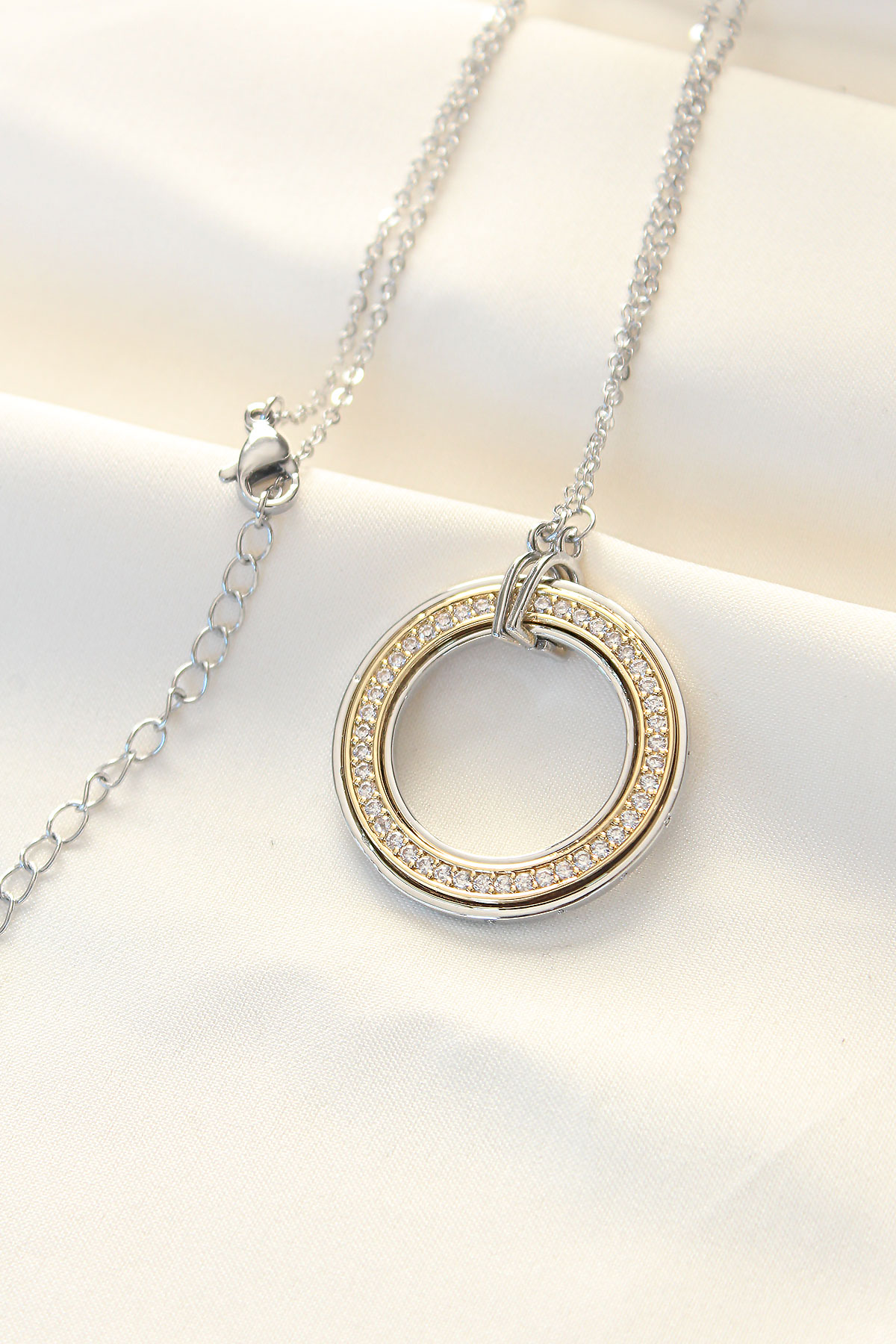 316L Çelik Zirkon Taşlı Çift Renkli Tifany Kolye