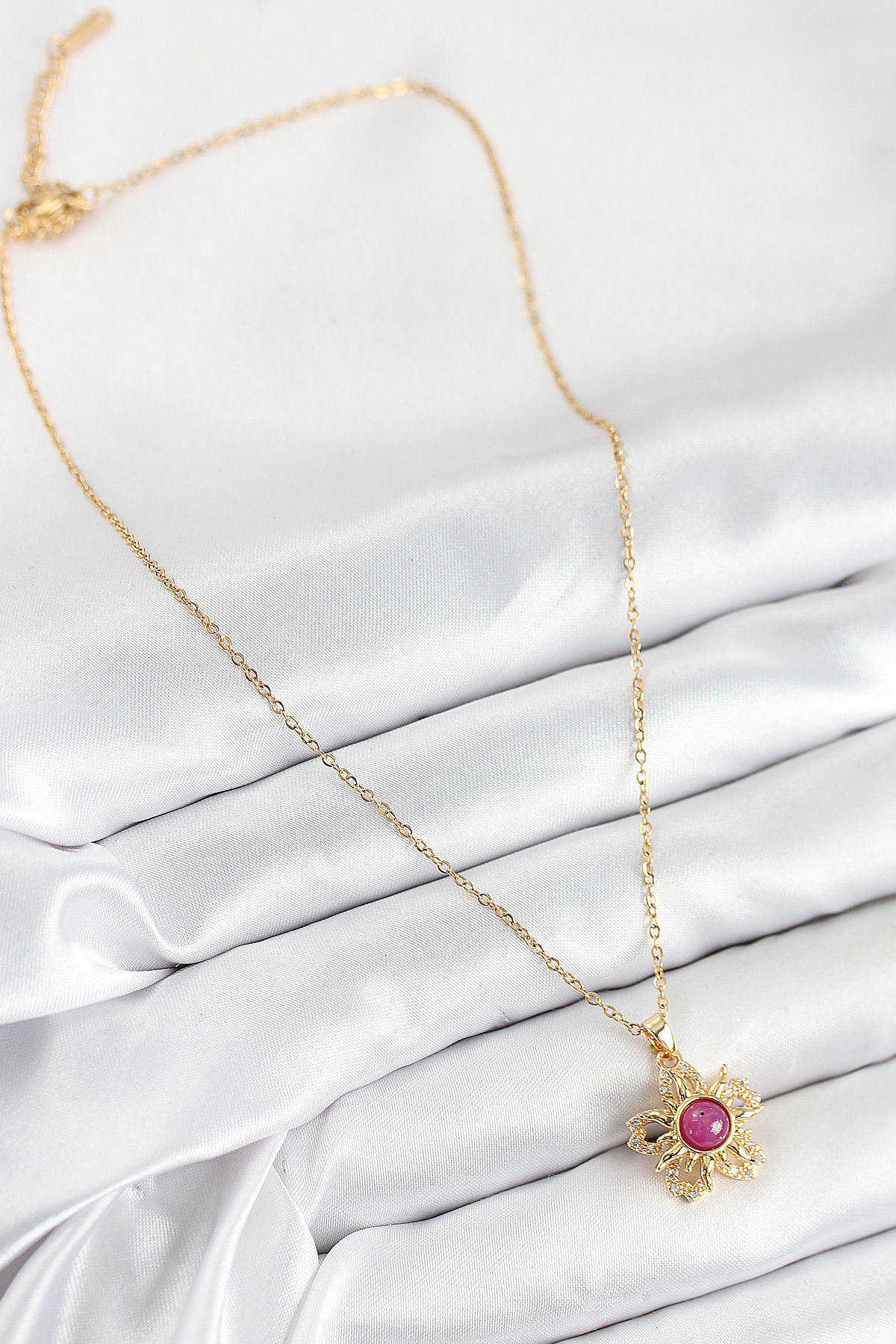 316L Çelik Zirkon Taşlı Döner Güneş Model Gold Renk Kadın Kolye