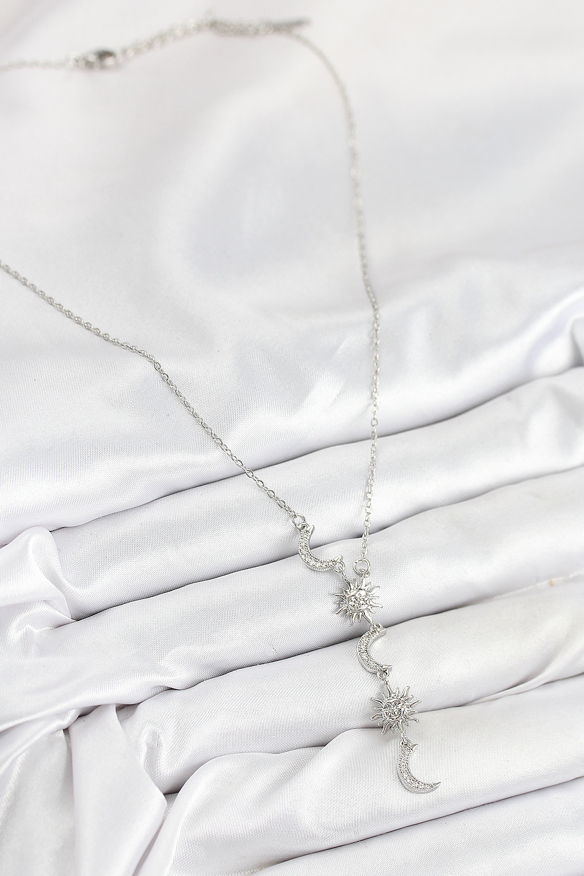 316L Çelik Zirkon Taşlı Güneş Ve Ay Model Gümüş Renk Kadın Kolye