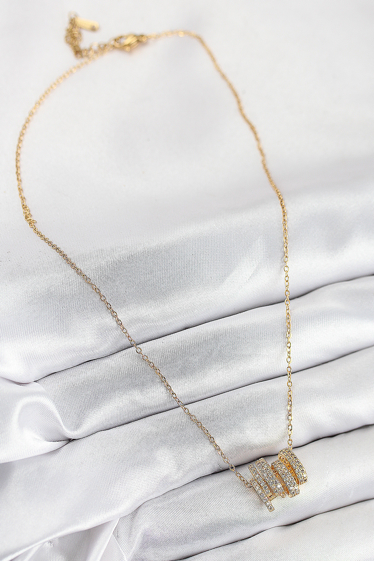 316L Çelik Zirkon Taşlı Sarmal Model Gold Renk Kadın Kolye