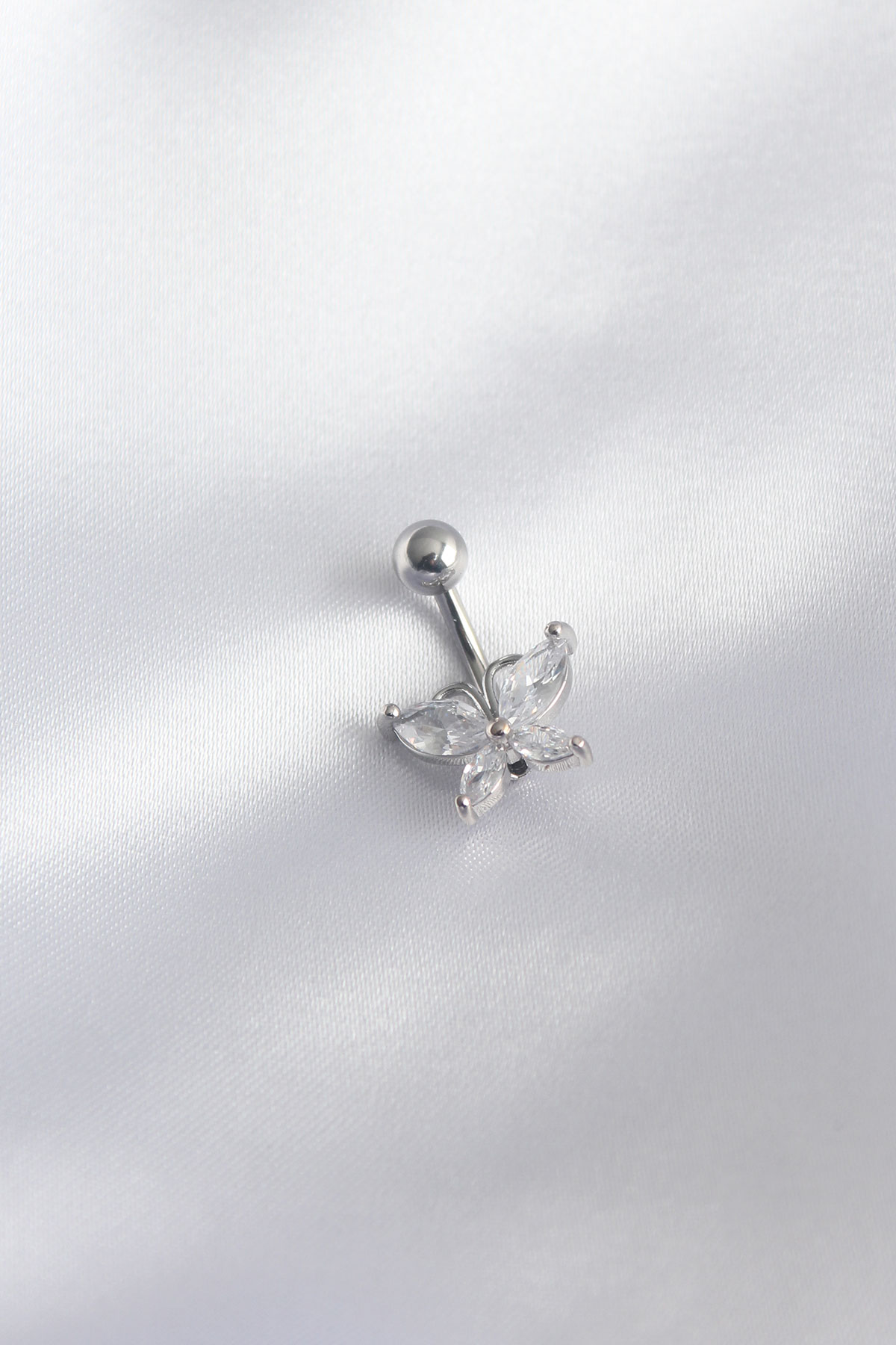 316L Cerrahi Çelik Gümüş Renk Zirkon Taş Kelebek Model Kadın Göbek Piercing