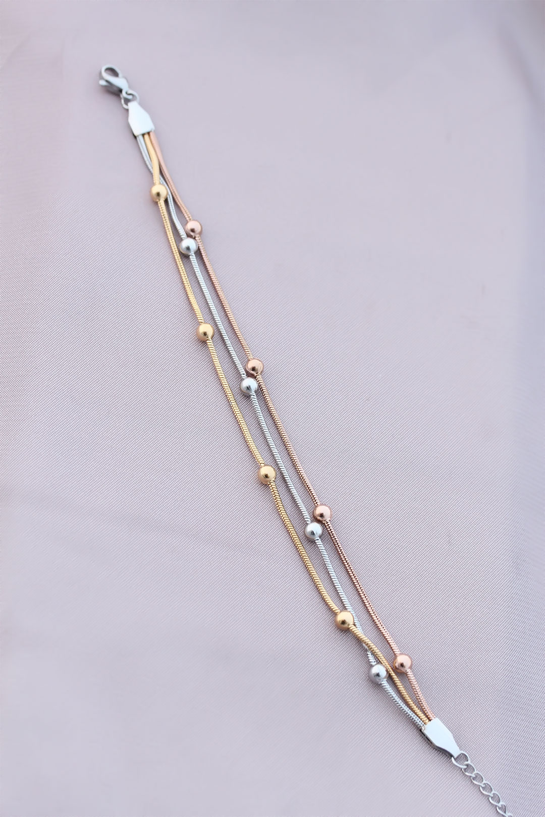 316L Kararmaz Çelik Gümüş Renk Top Zincirli Kadın Bileklik