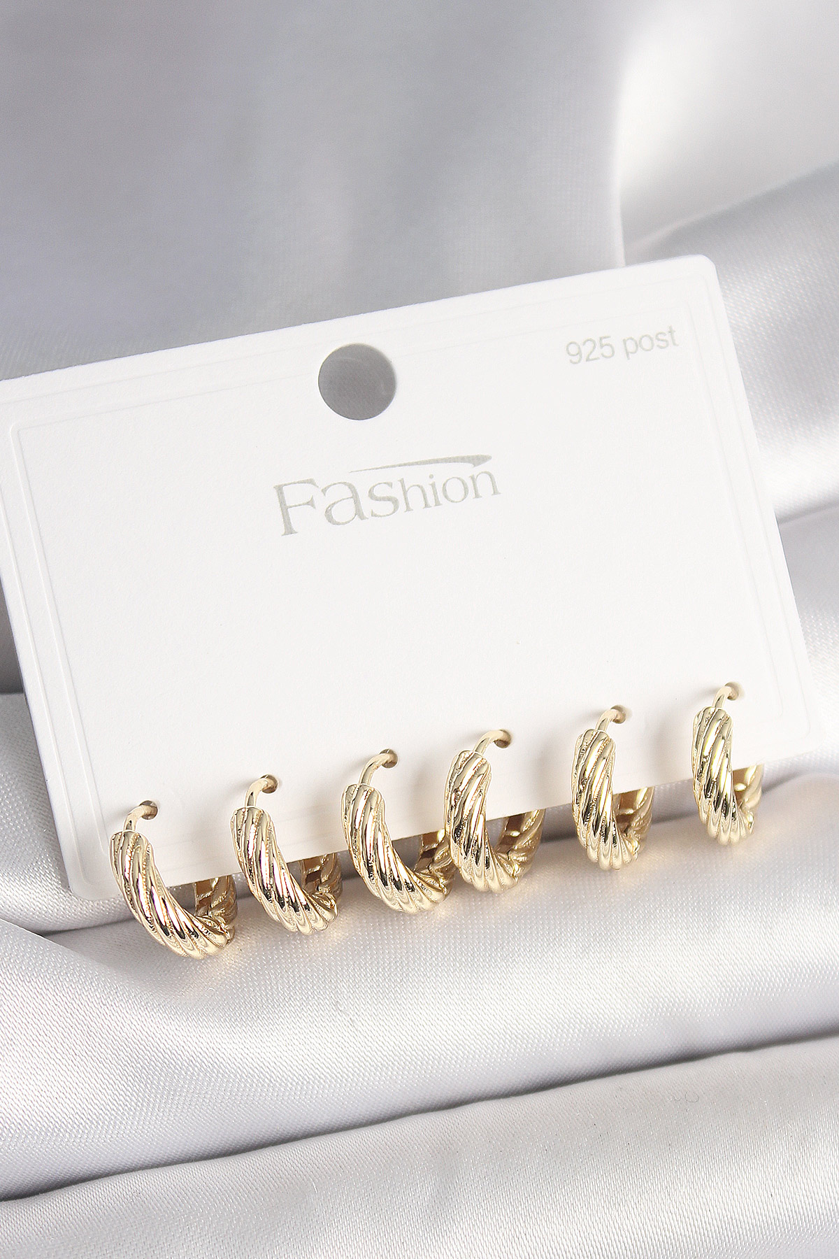 925 Ayar Gümüş Çivi Pirinç Gold Renk İşlemeli Halka Model Kadın Küpe Seti