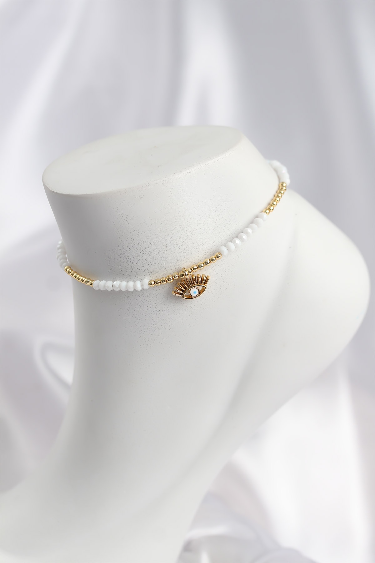 Beyaz Renk Boncuklu Nazarlı Göz Figürlü Halhal