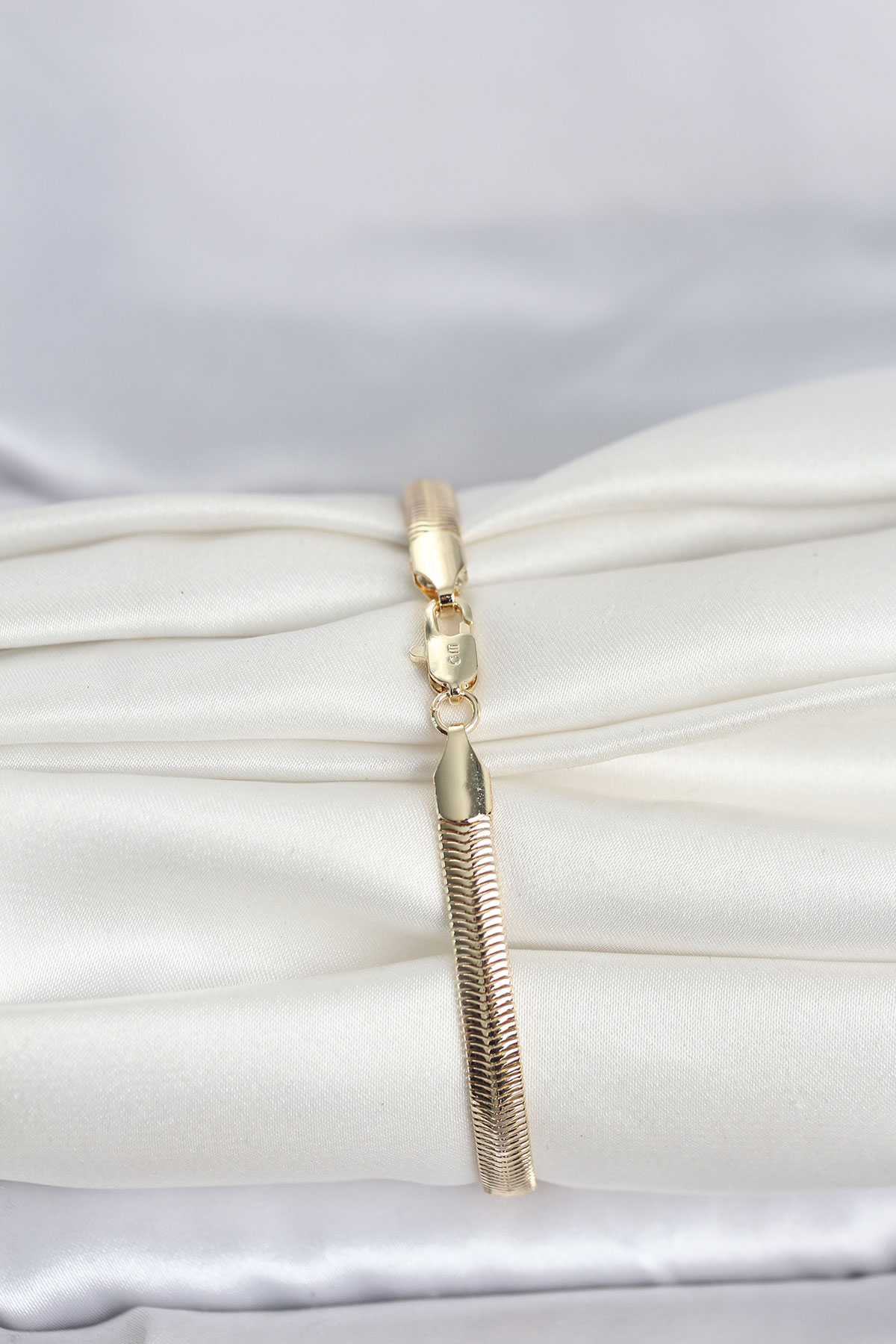 CM 14K Gold Renk Yassı Zincir Yılan Model Kadın Bileklik