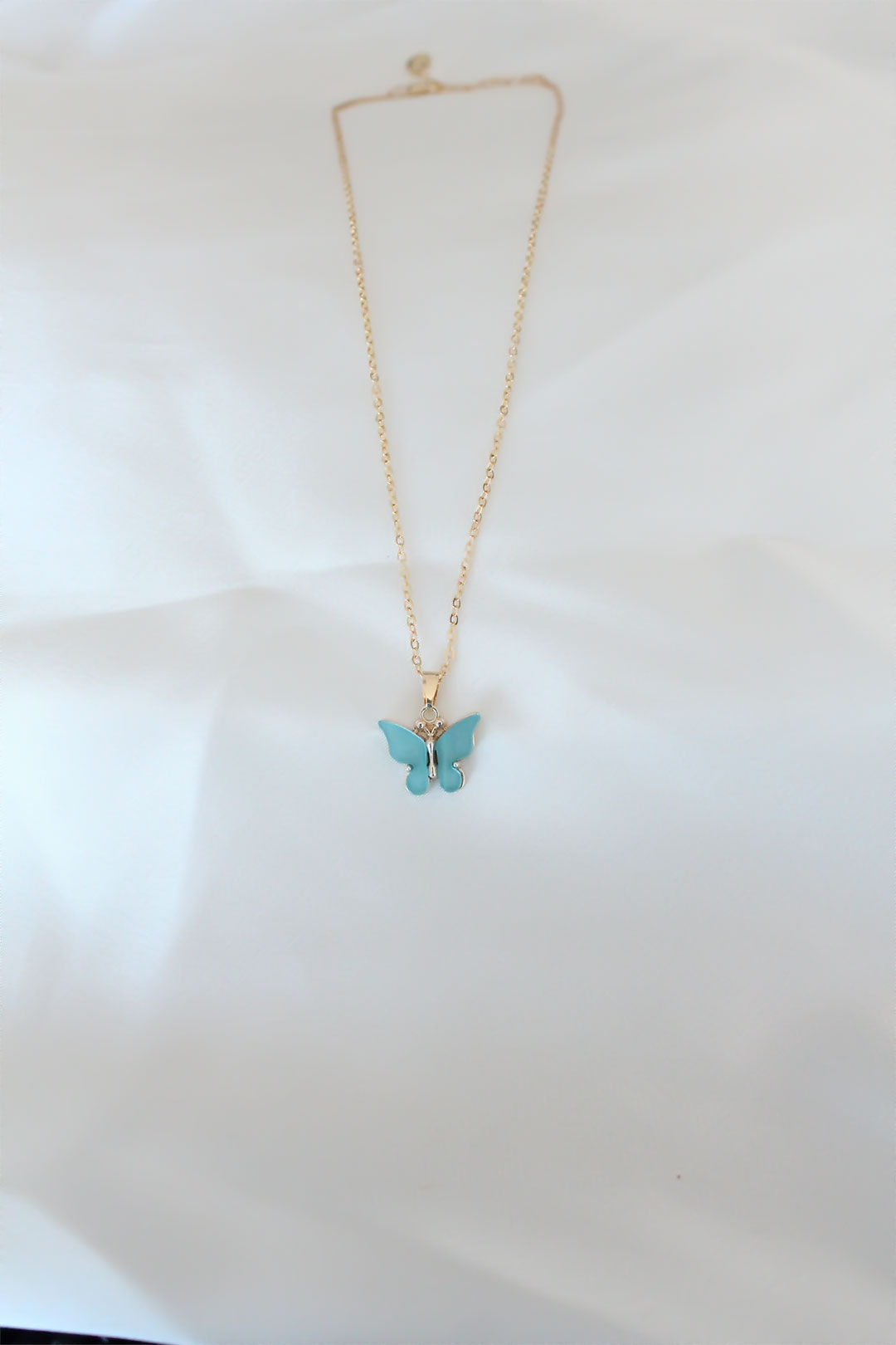 Gold Kaplama Turkuaz Renk Sedefli Kelebek Kolye