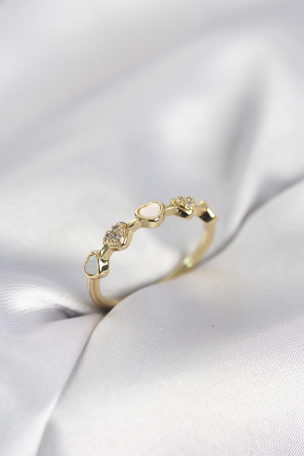 Gold Renk Minimal Kalp Model Zirkon Taşlı Pirinç Kadın Yüzük