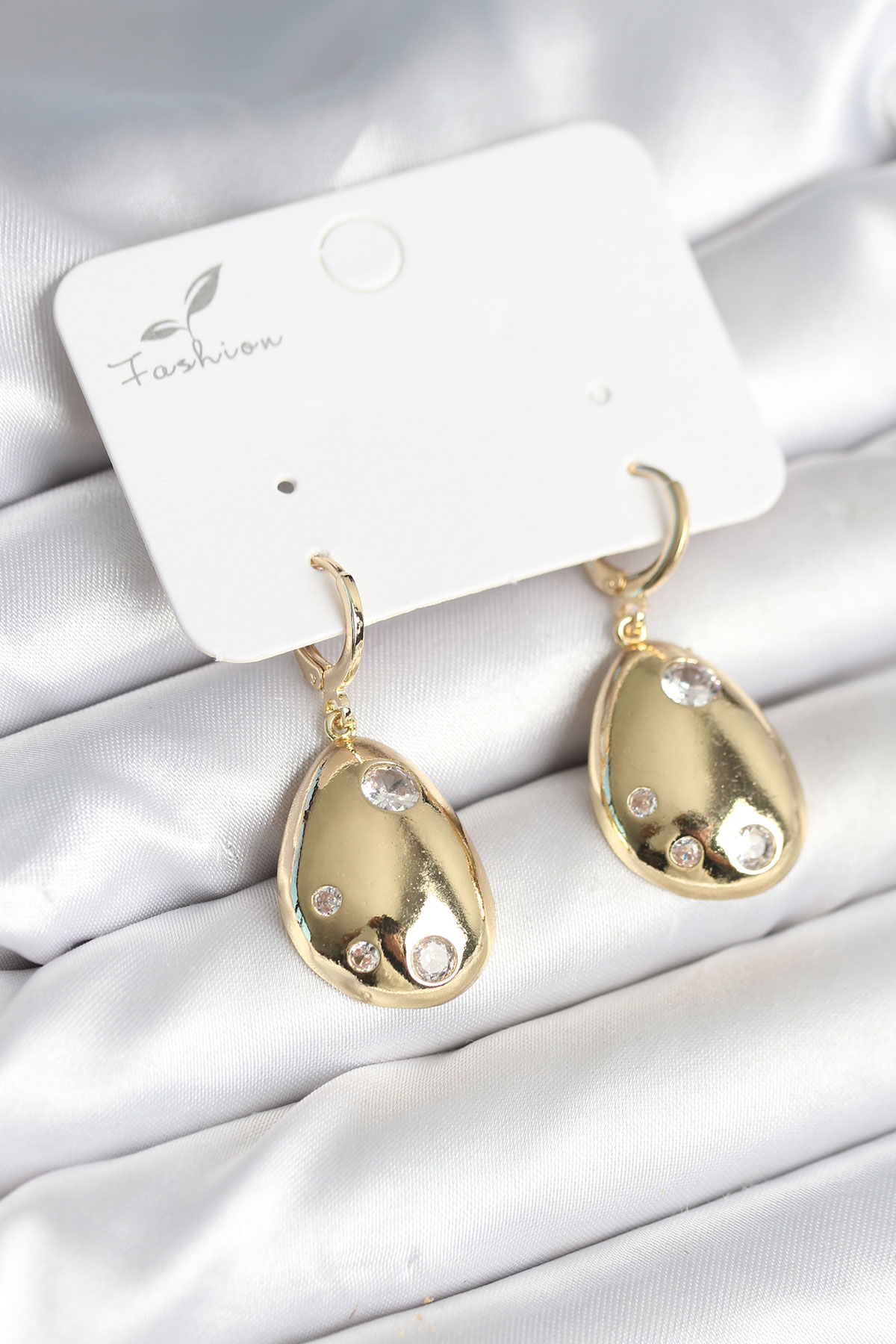 Gold Renk Pirinç Damla Model Kadın Küpe