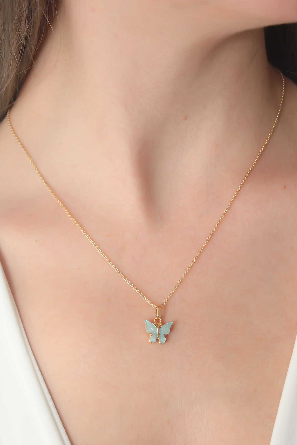 Gold Renk Su Yeşili Kelebek Figür Kadın Kolye