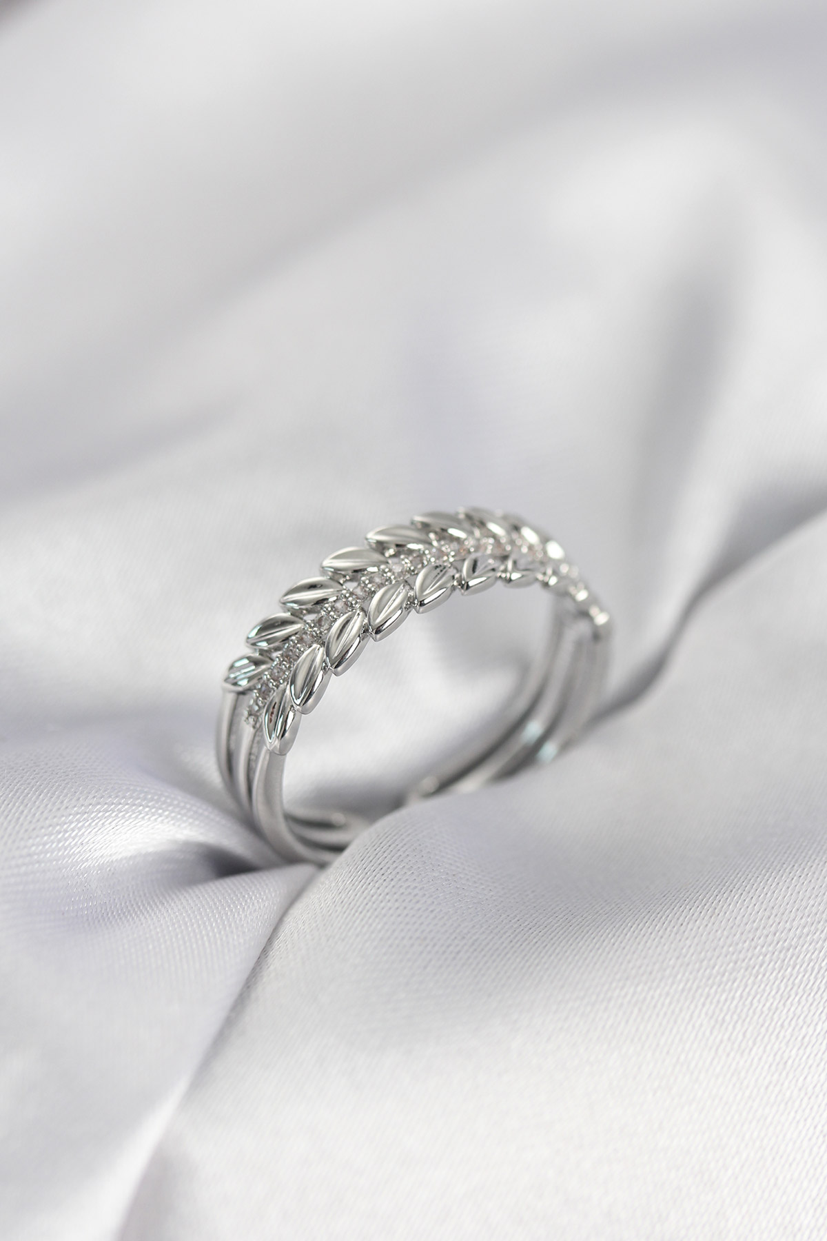 Gümüş Renk Başak Model Zirkon Taşlı Kadın Yüzük