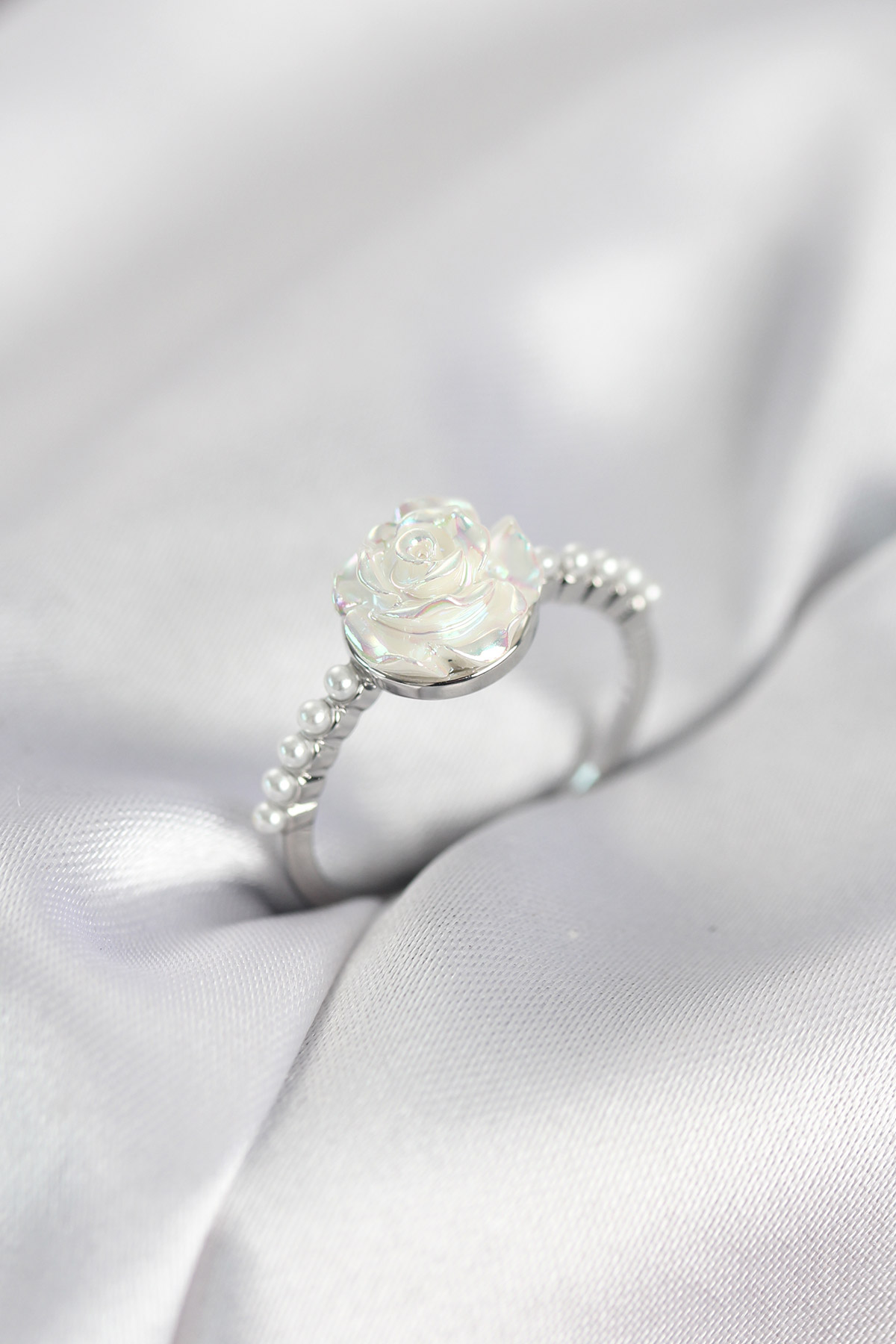 Gümüş Renk Gül Model İncili Kadın Yüzük