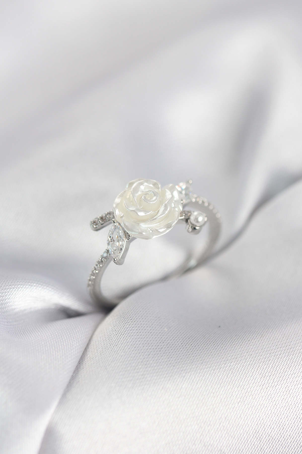 Gümüş Renk Gül Model Zirkon Taşlı Kadın Yüzük