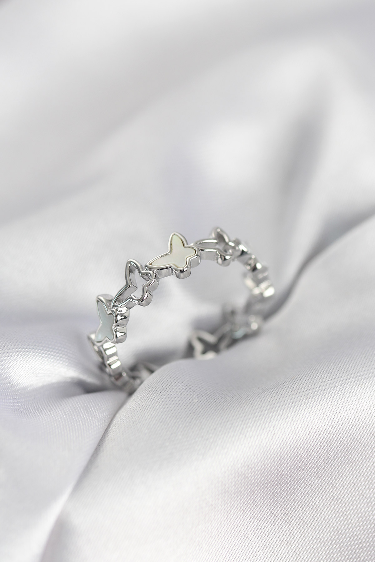 Gümüş Renk Kelebek Model Pirinç Kadın Yüzük