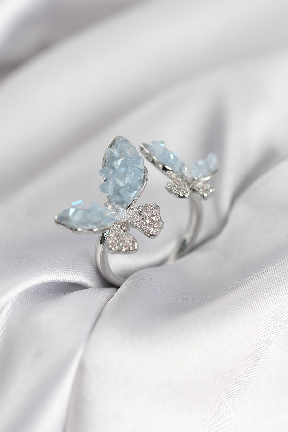 Gümüş Renk Mavi Kelebek Model Zirkon Taşlı Kadın Yüzük