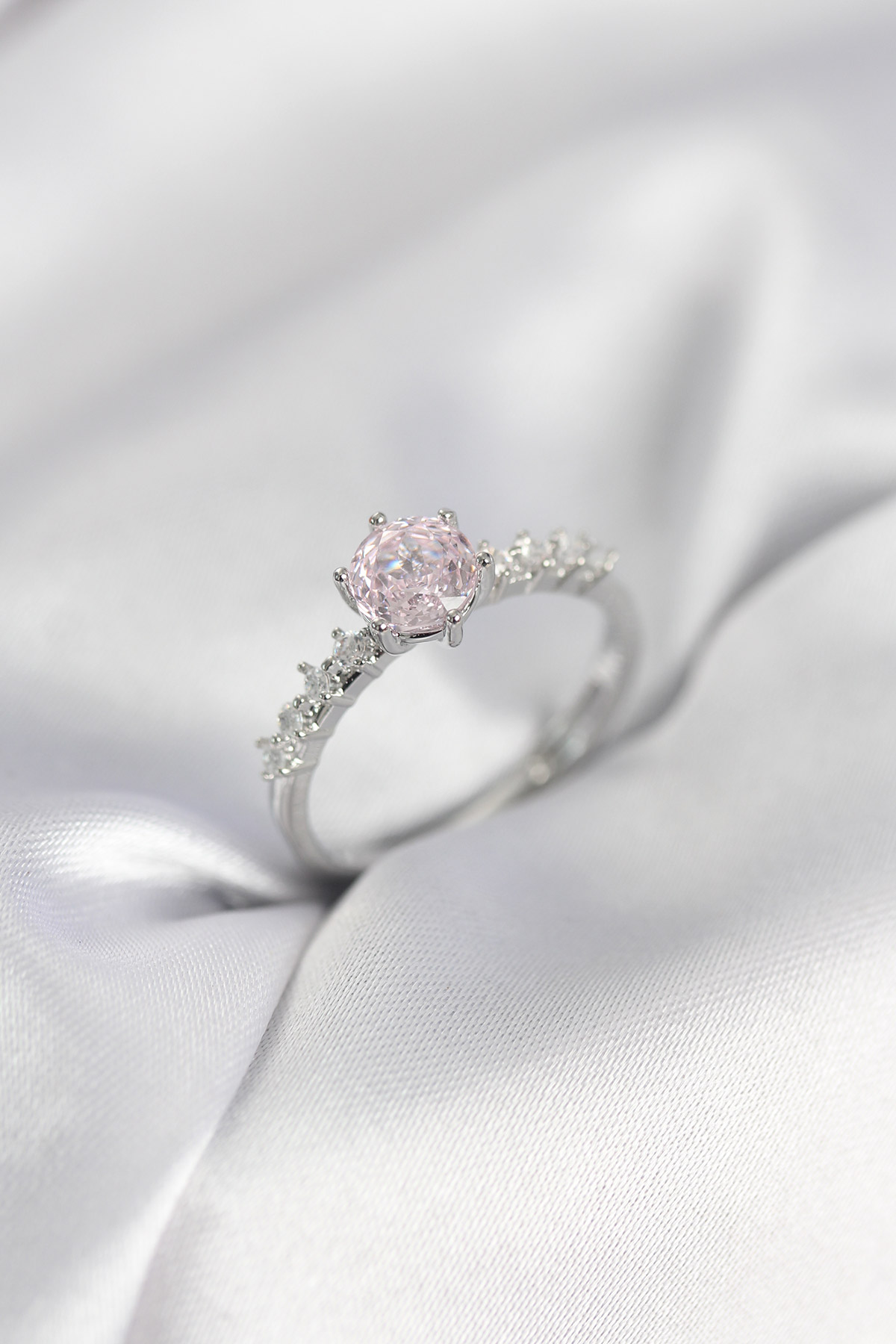 Gümüş Renk Pembe Tek Taş Model Zirkon Taşlı Kadın Yüzük