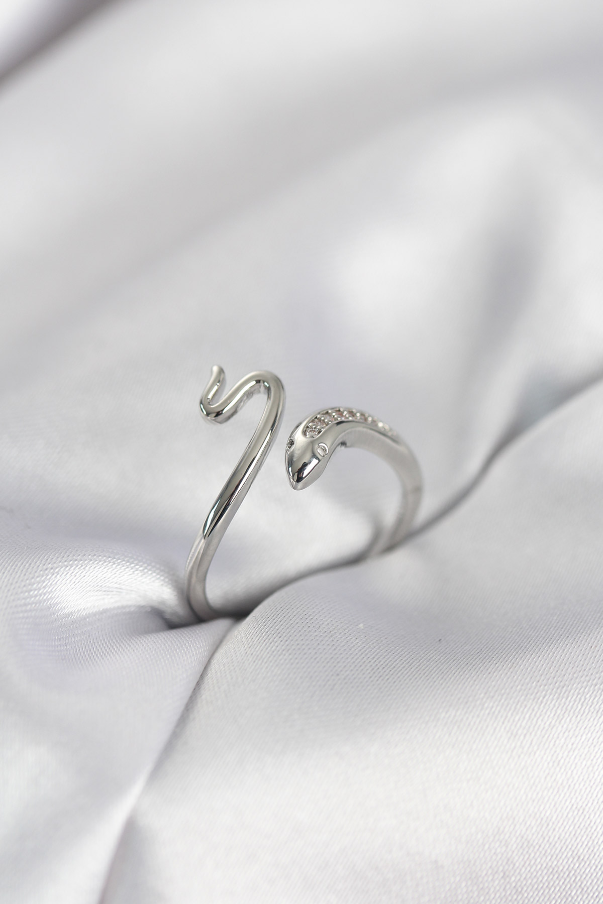 Gümüş Renk Yılan Model Zirkon Taşlı Kadın Yüzük
