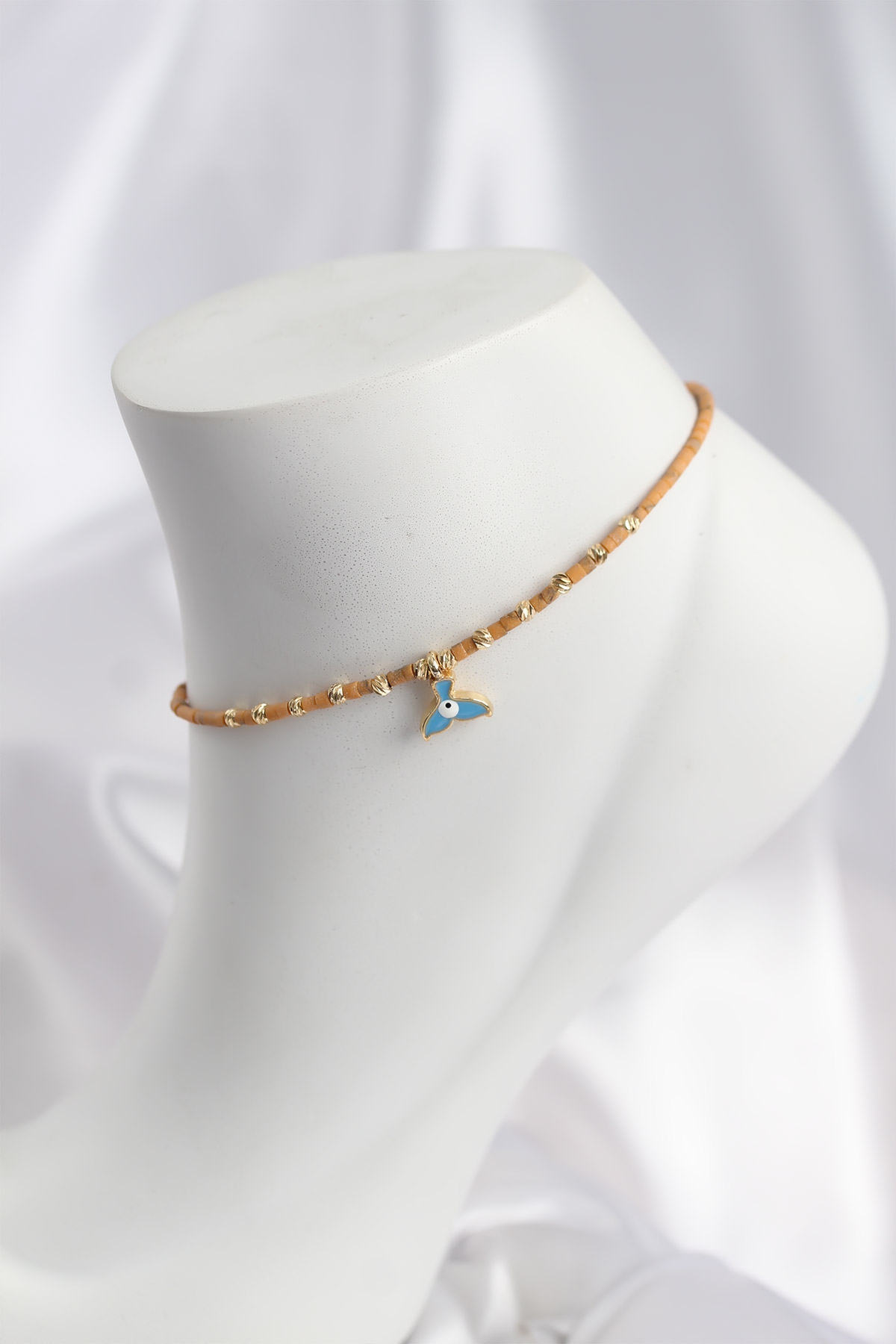 Kahverengi Miyuki Boncuklu Balık Kuyruğu Motifli Halhal
