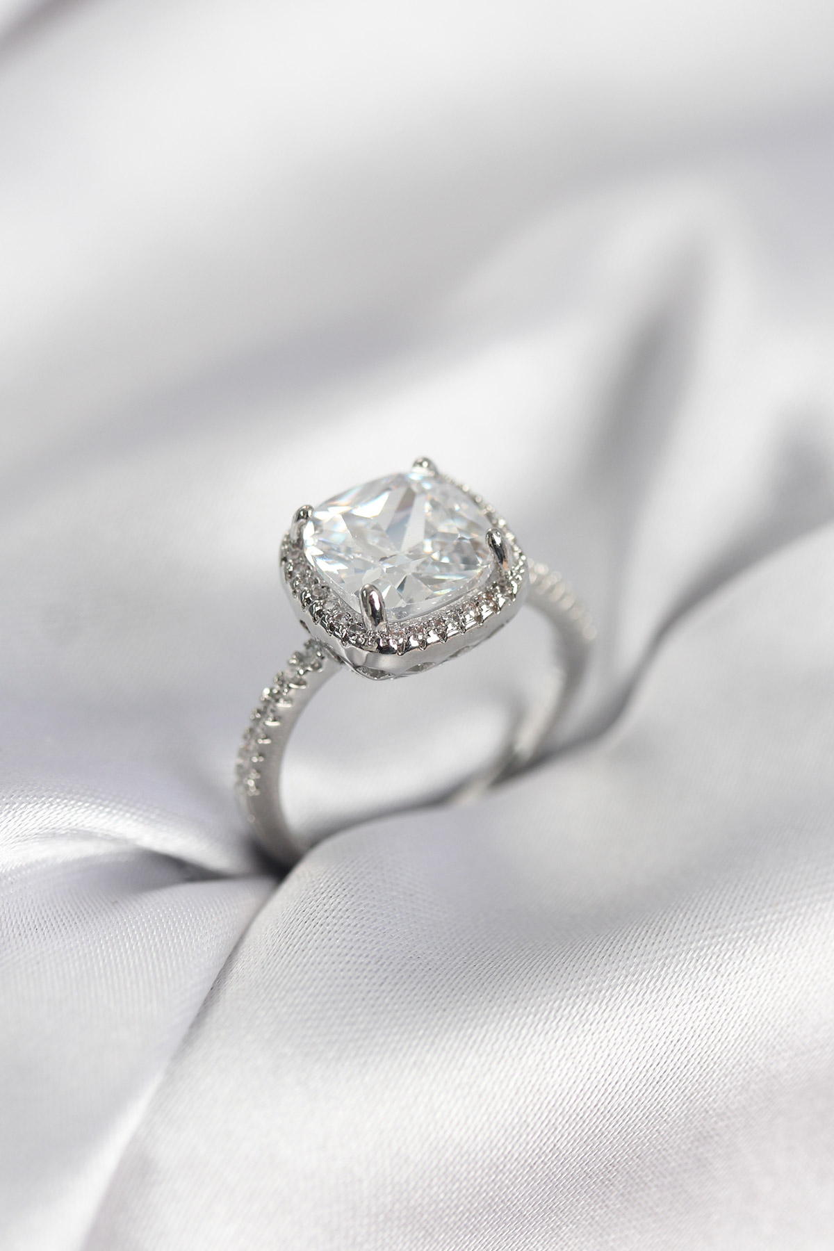 Kare Tek Taş Model Zirkon Taşlı Gümüş Renk Kadın Yüzük
