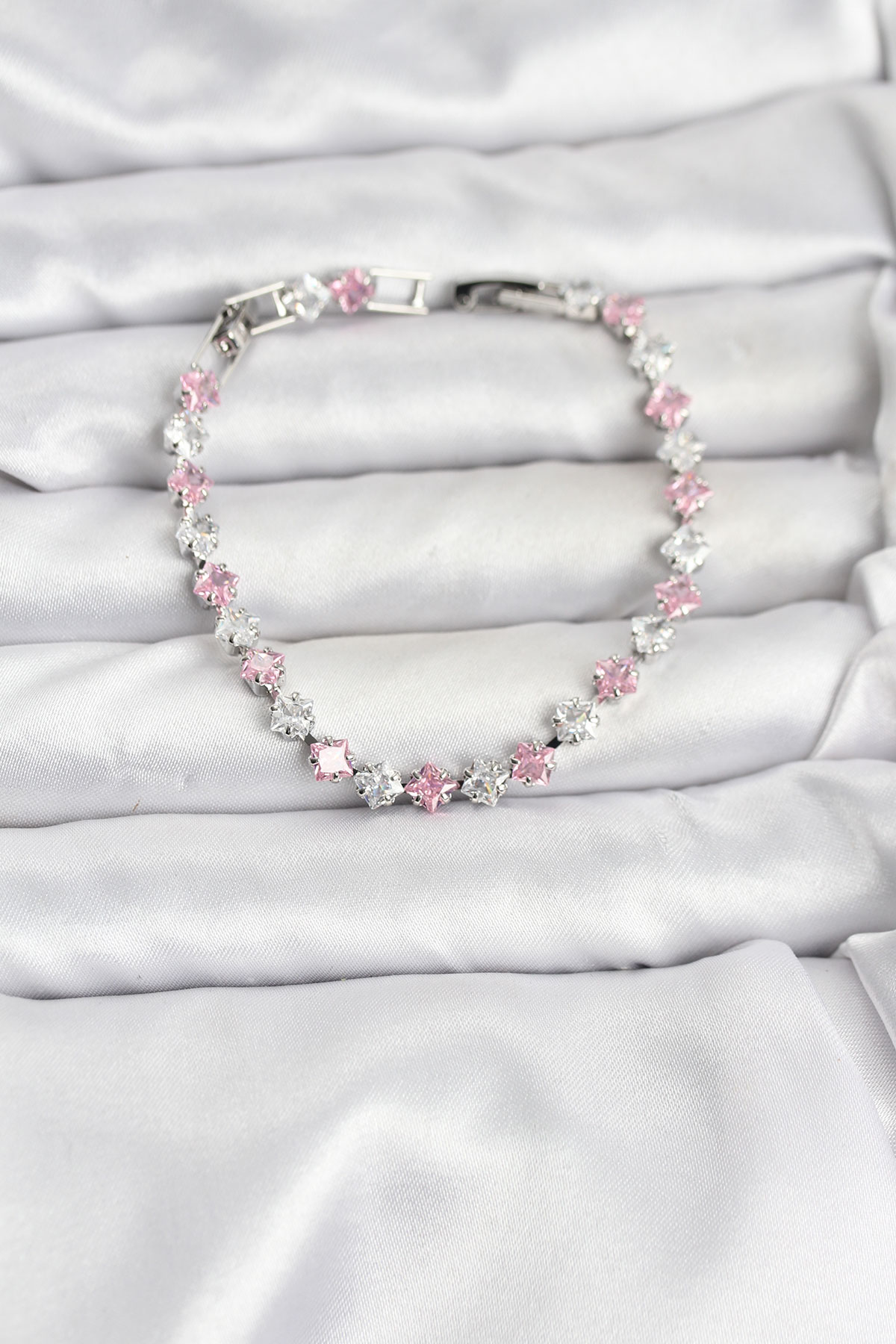 Kare Zirkon Taşlı Gümüş Renk Kadın Bileklik