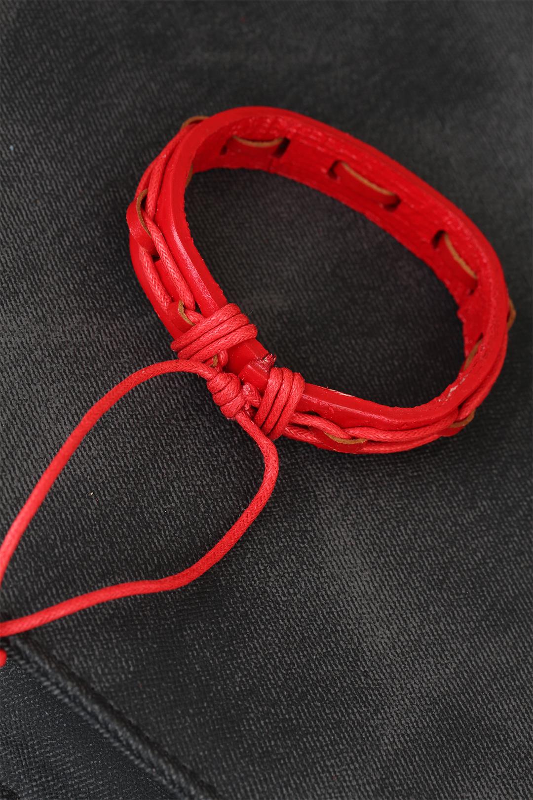 Kırmızı Renk Ayarlamalı İpli Deri Erkek Bileklik