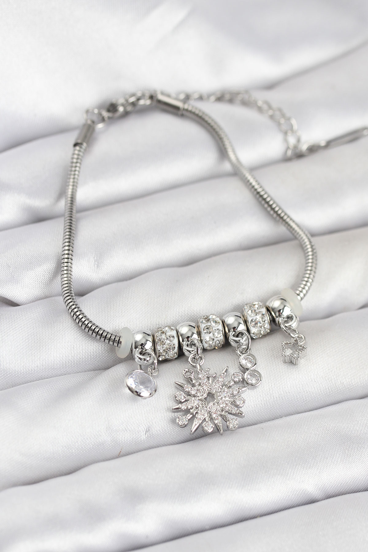 Kutup Yıldızı Model Charmlı Gümüş Renk Kadın Bileklik