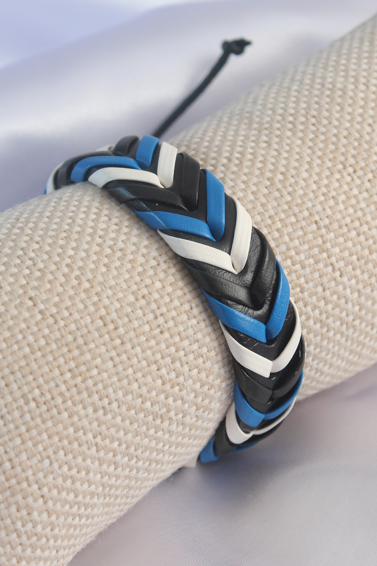 Mavi Beyaz Renk Siyah Deri İpli Erkek Bileklik