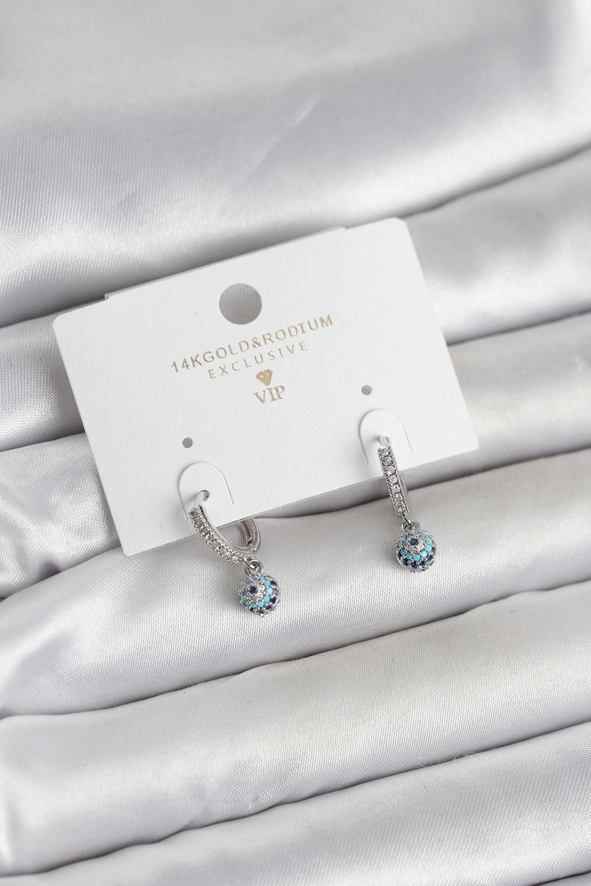 Minimal Nazarlı Model Gümüş Renk Zirkon Taşlı Kadın Küpe