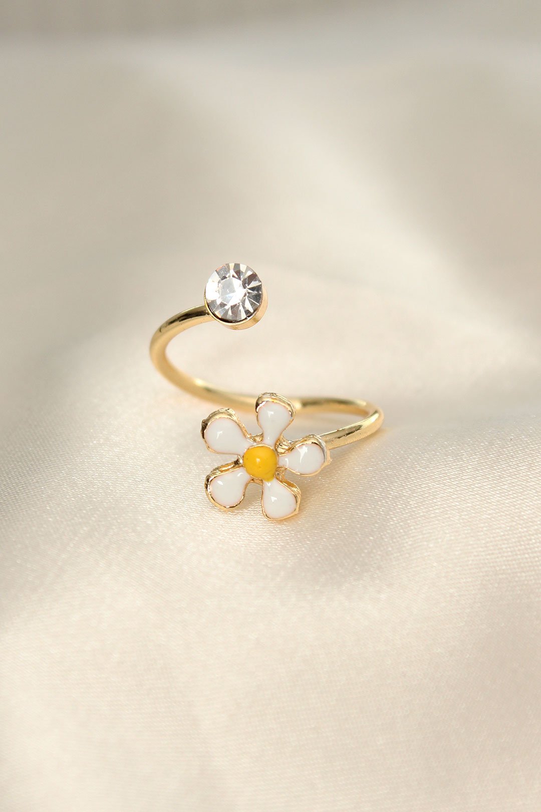 Papatya Tasarımlı Zirkon Taşlı Ayarlanabilir Yüzük