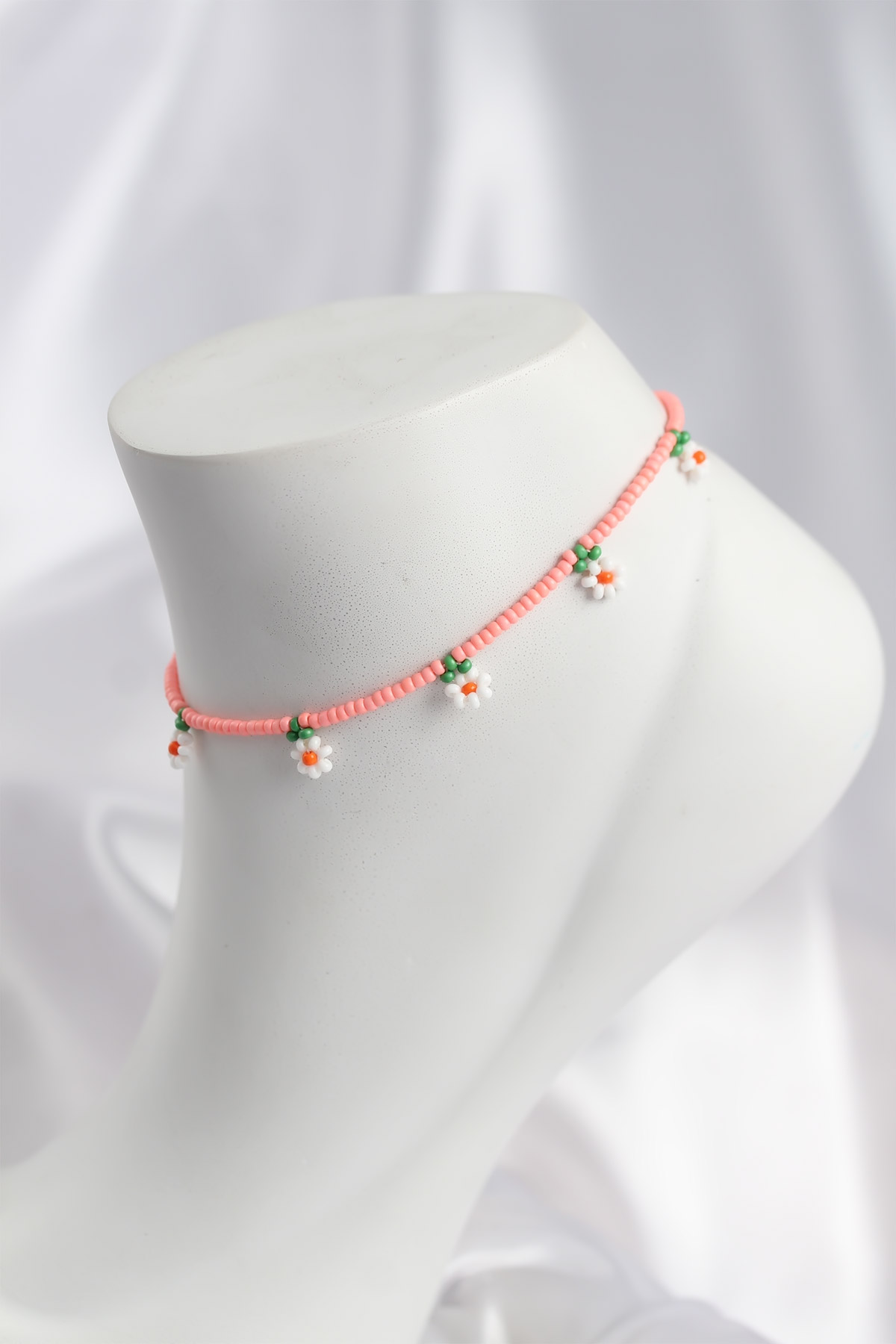 Pembe Renk Boncuklu Papatya Motifli Halhal