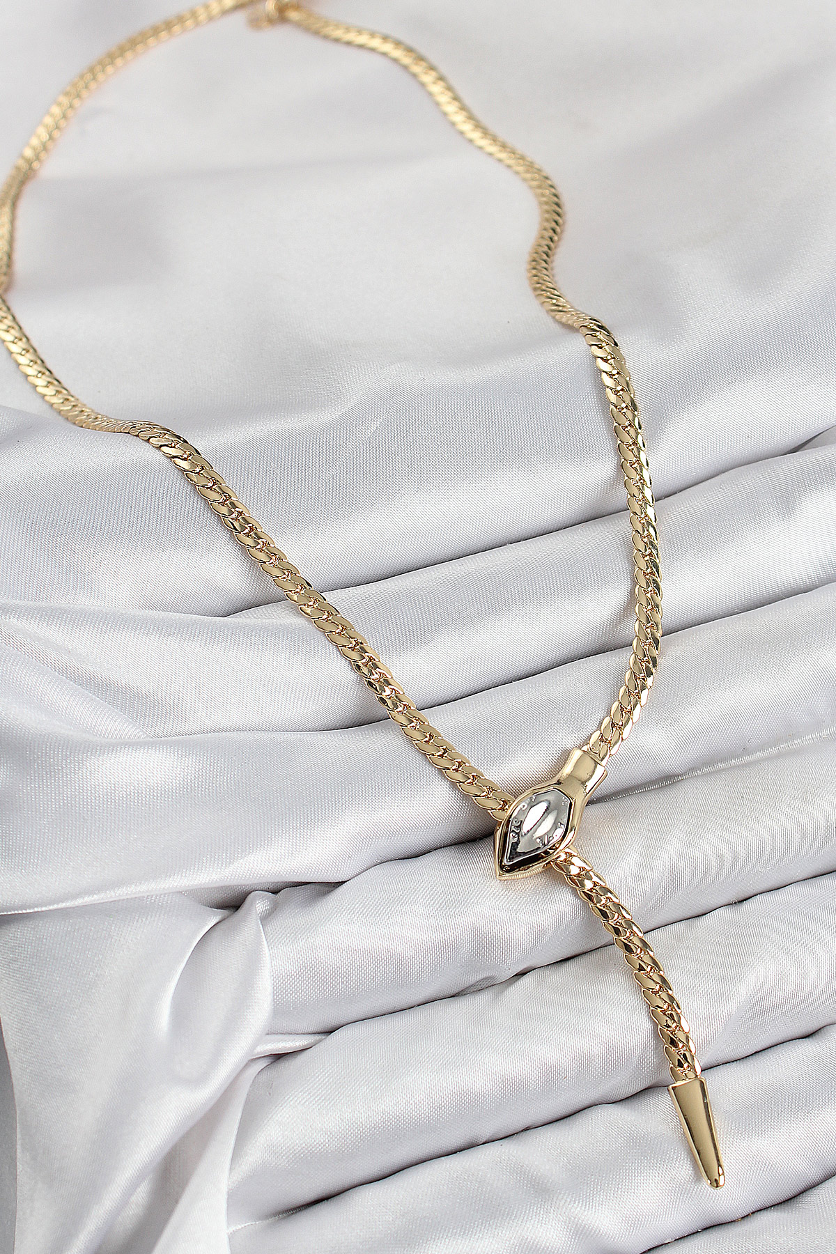 Pirinç Asansörlü Yılan Model Gold Renk Kadın Kolye