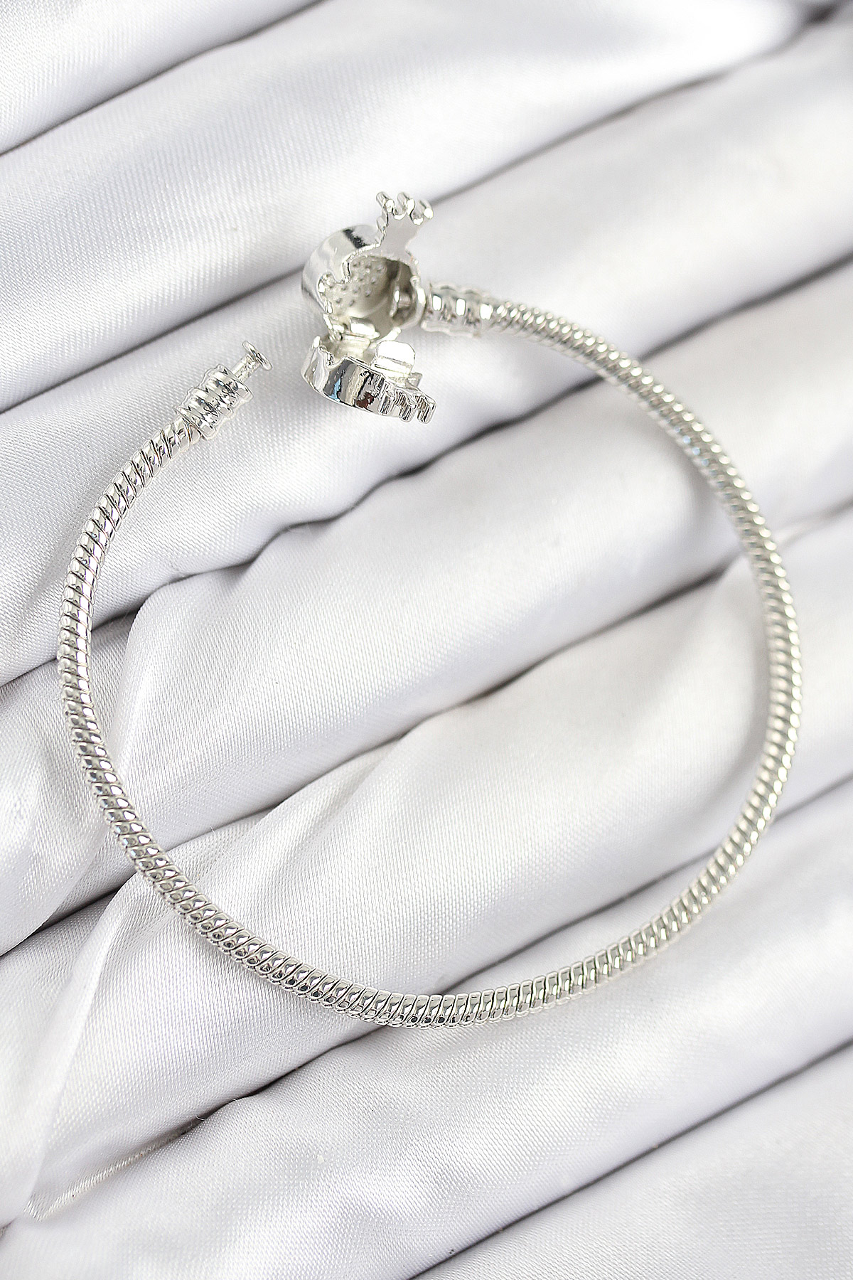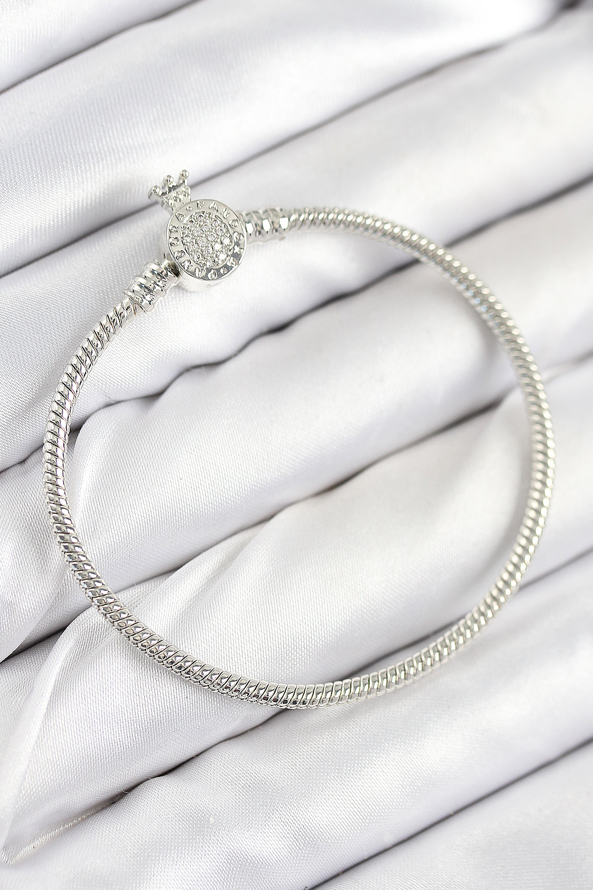 Pirinç Charm Zirkon Taşlı Taç Model Gümüş Renk Kadın Bileklik
