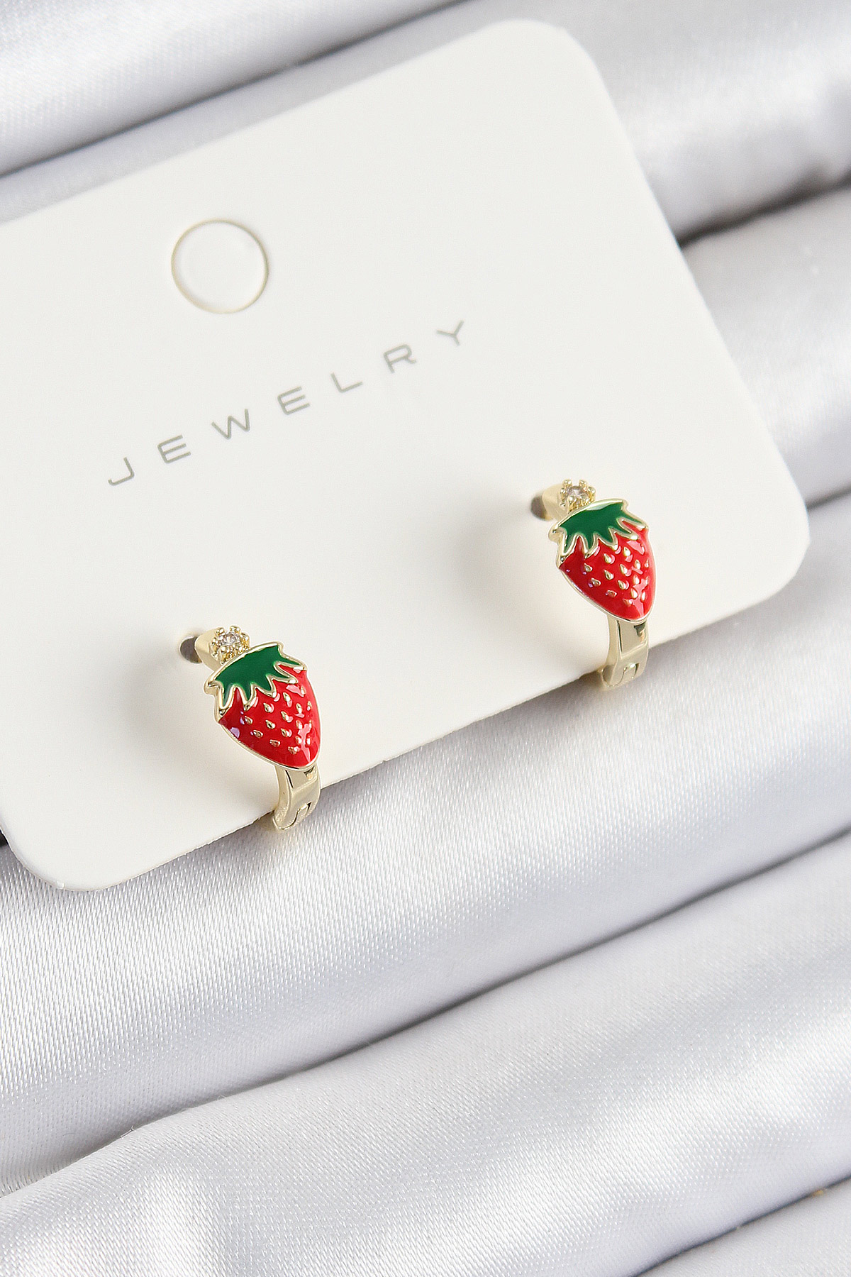 Pirinç Çilek Model Gold Renk Çocuk Küpe
