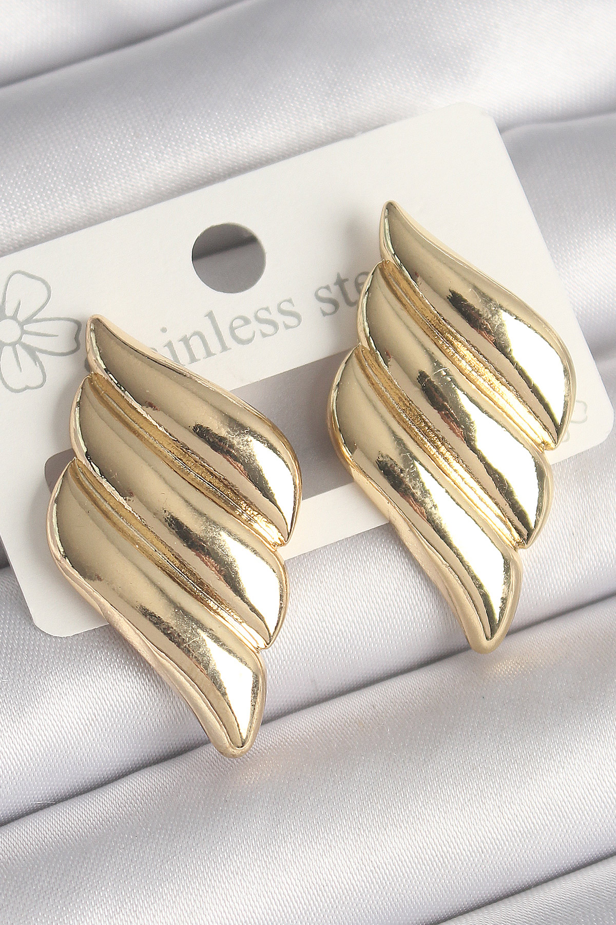 Pirinç Gold Renk 3 Sıralı Dalgalı Model Kadın Küpe