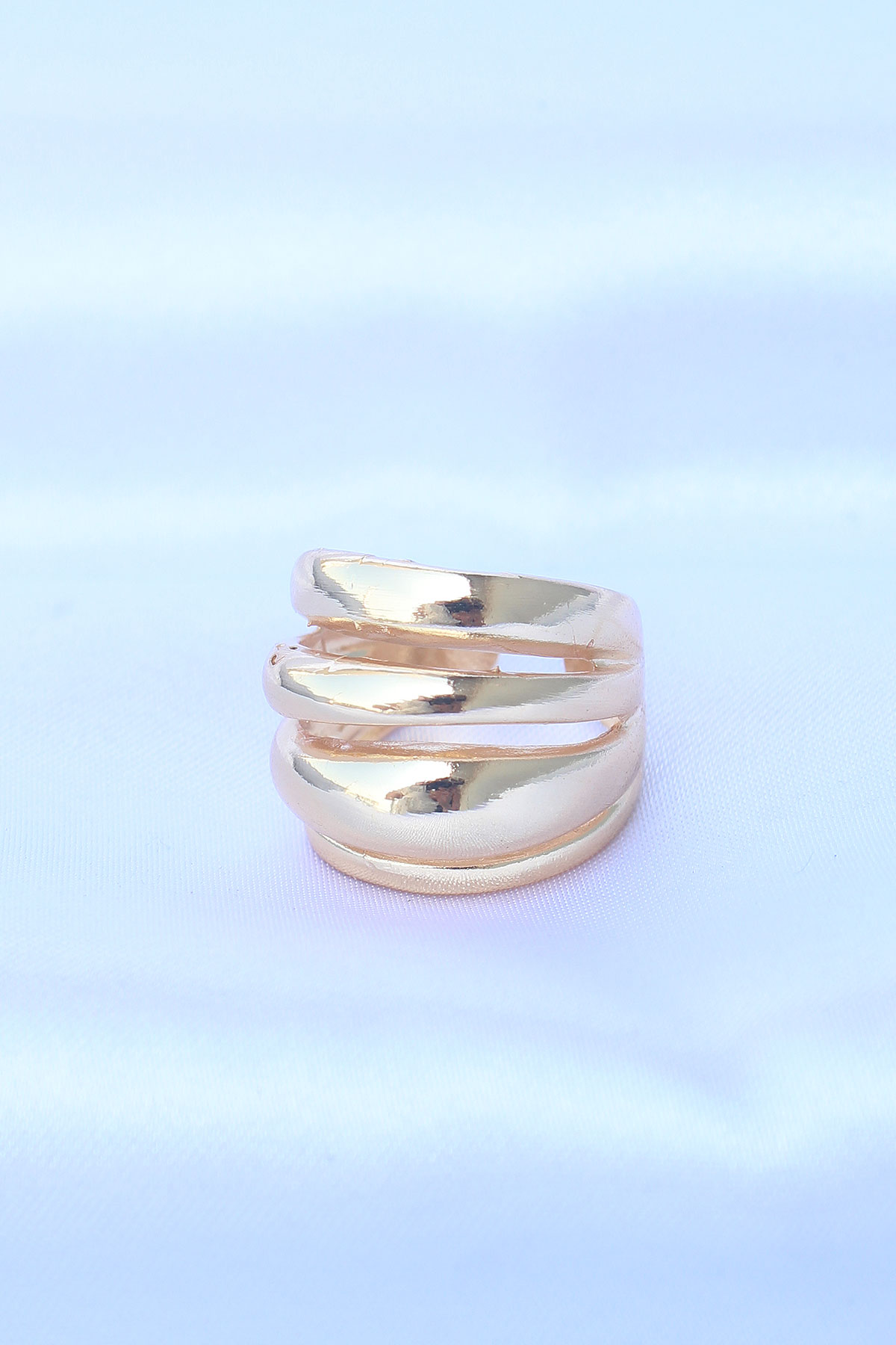 Pirinç Gold Renk Ayarlanabilir Tırtıklı Bombe Yüzük