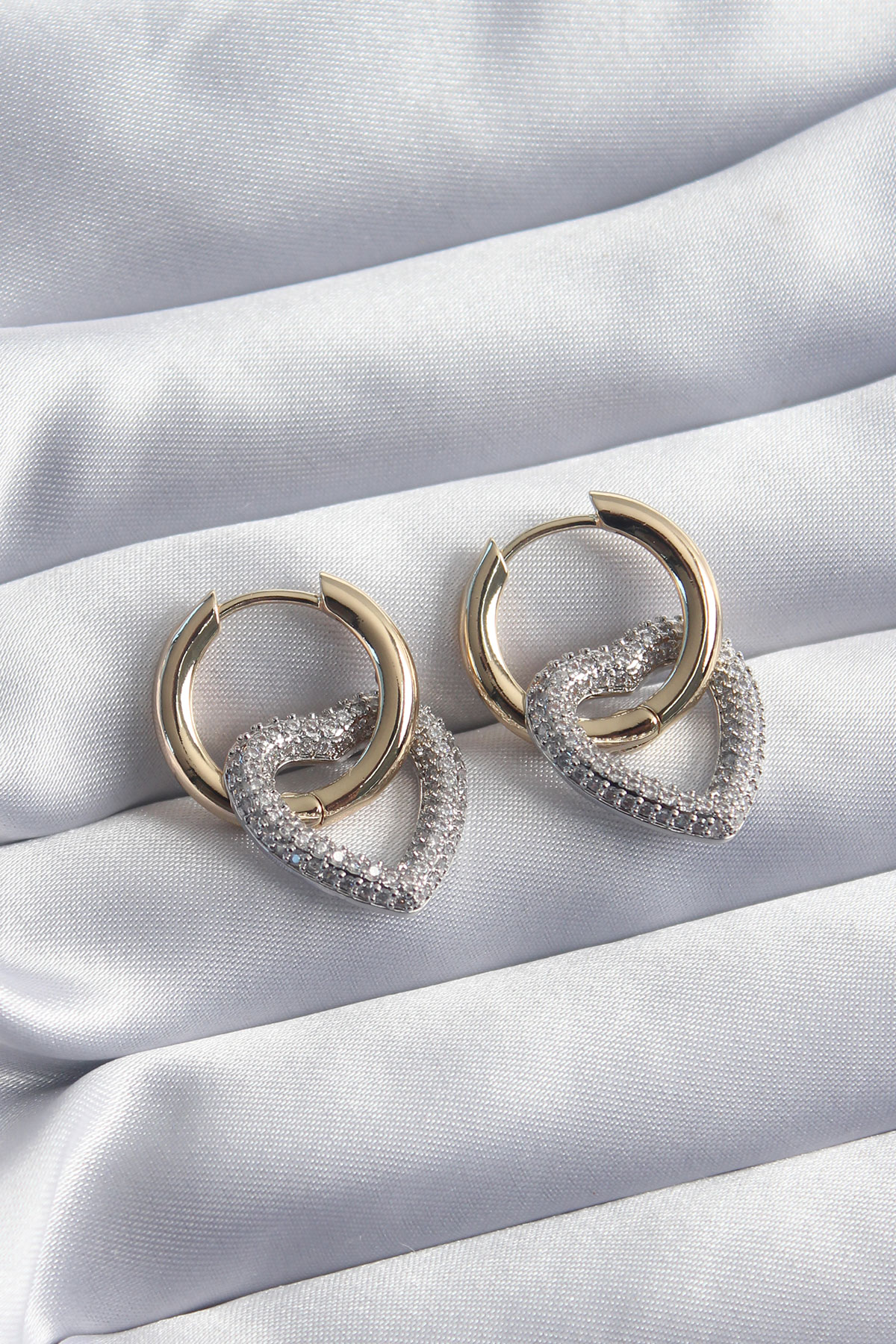 Pirinç Gold Renk Halka Gümüş Zirkon Taşlı Kalp Model VİP Seri Kadın Küpe adet