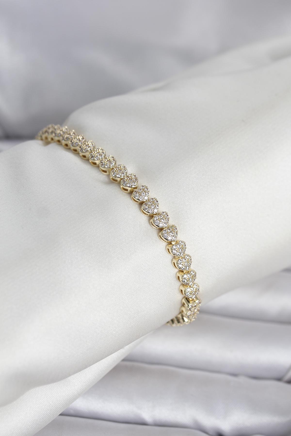 Pirinç Gold Renk Kalp Model Sıralı Zirkon Taşlı Kadın Bileklik